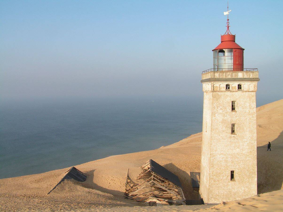 Die nächste Station ist dann der versandete Leuchtturm. Auch hier gegenüber dem letzten Besuch wieder veränderte Landschaft. Nun hat die Sanddüne den Leuchtturm schon fast komplett überrollt und bahnt sich stur ihren Weg ins Landesinnere.