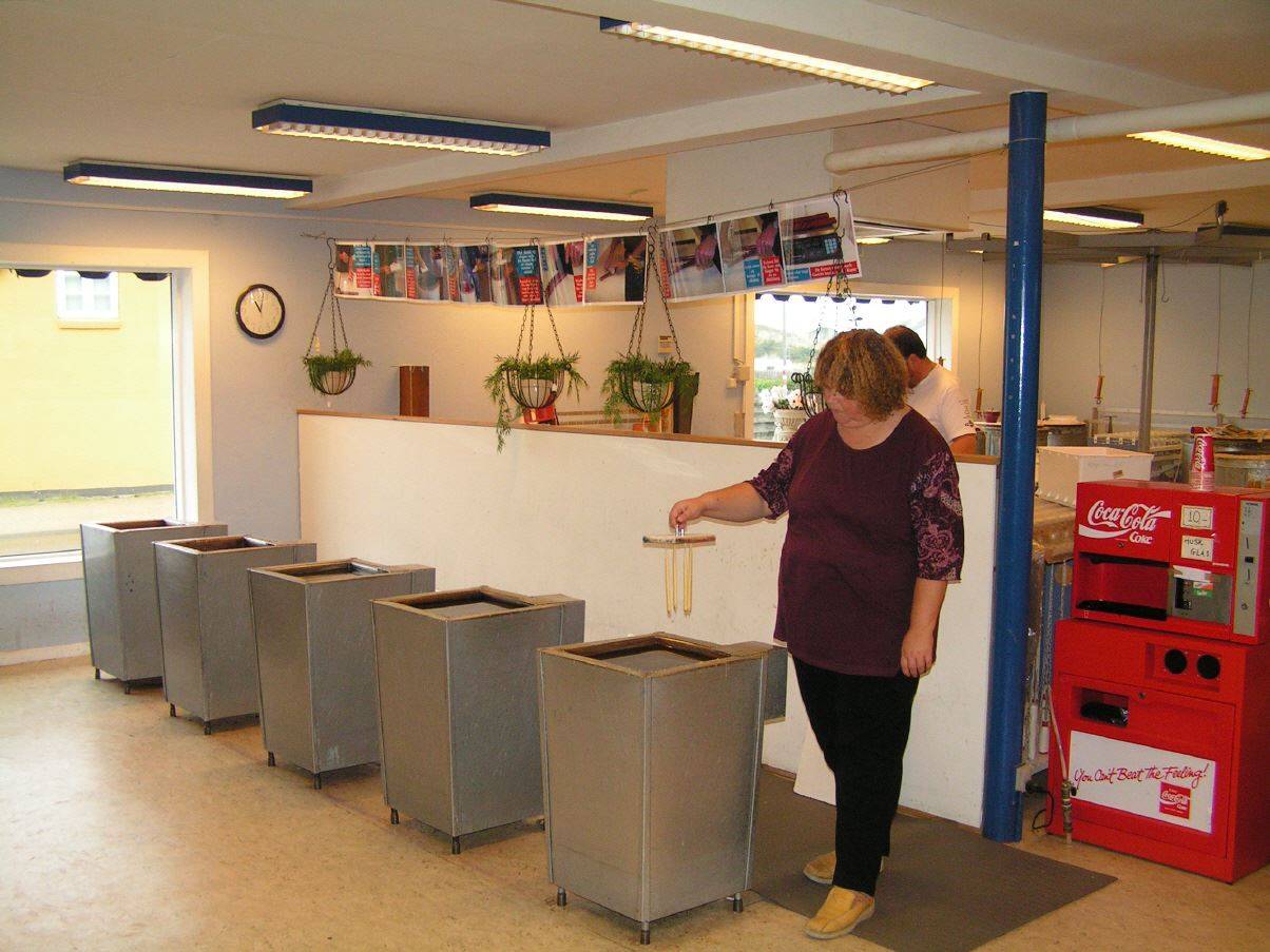 So landen wir dann in Løkken. Bei einem Stadtbummel landen wir in der Bolchekogeri (Bonbonfabrik). Hier können wir zuschauen, wie die leckeren dänischen Bonbons hergestellt werden.