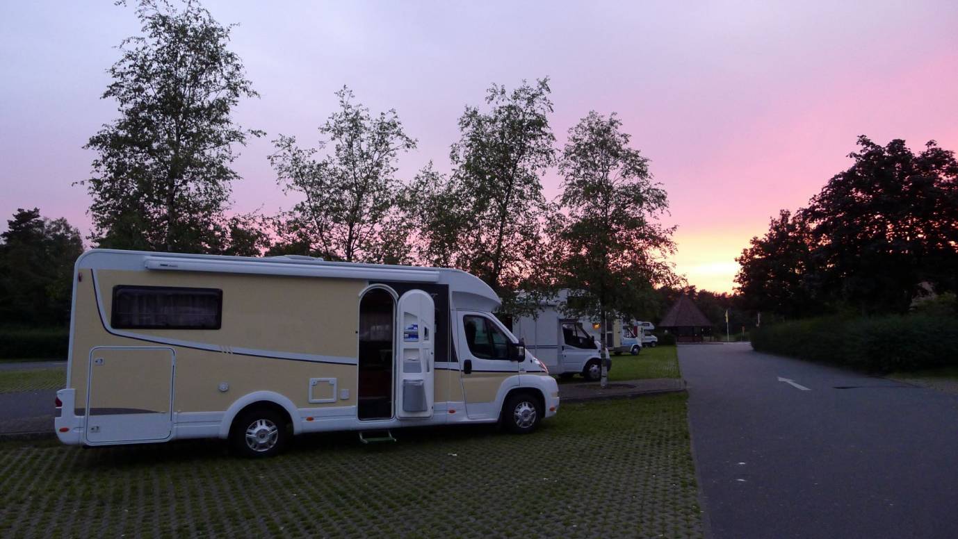 Da der Parkplatz recht abgelegen liegt, beschließen wir auch sogleich, hier das Nachtlager aufzuschlagen. Ein weiteres Wohnmobil steht schon da. Nach dem Abendessen am Picknicktisch plaudern wir noch ein wenig mit unseren Nachbarn, bis wir uns gegen 21 Uhr in unsere Fahrzeuge zurückziehen.