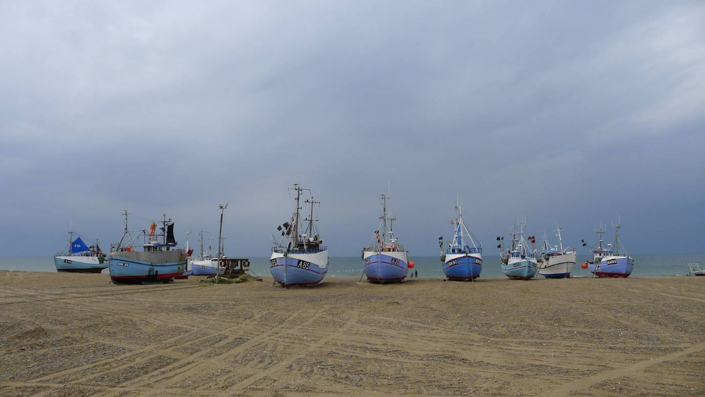 Wir fahren weiter nach Torup Strand. Hier sehen wir so viele Fischerboote wie schon lange nicht mehr am "Hafen". Es ist ja kein Hafen, die Schiffe werden mit Seilwinden an Land gezogen und wieder zurück ins Wasser. So richtig gefallen uns hier die Parkmöglichkeiten nicht, also fahren wir wieder weiter.
