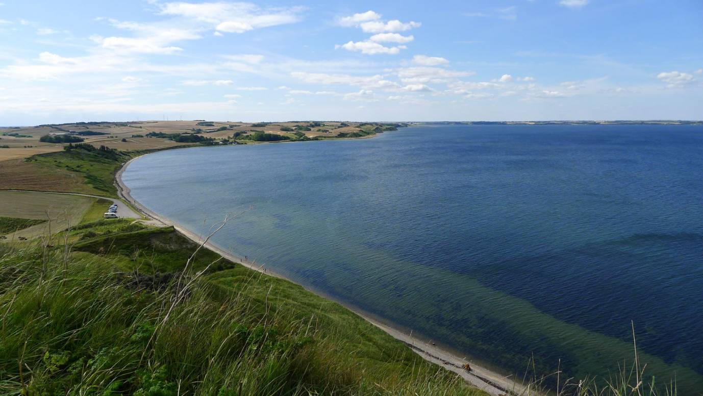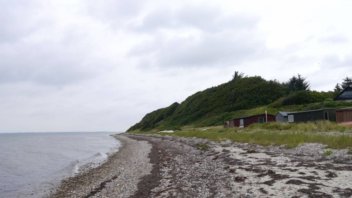 Das nächste Ziel ist die große Gesteinsformation Hanklit, die etwa 70m über dem Limfjord als "Berg" herausragt. Mutig besteigen wir den hohen Berg um von oben die tolle Aussicht über den Limfjord zu genießen. Nachdem wir auch den Abstieg wohlbehalten überstanden spazieren wir noch am Fuße des Hanklit am steinigen Limfjordstrand entlang.