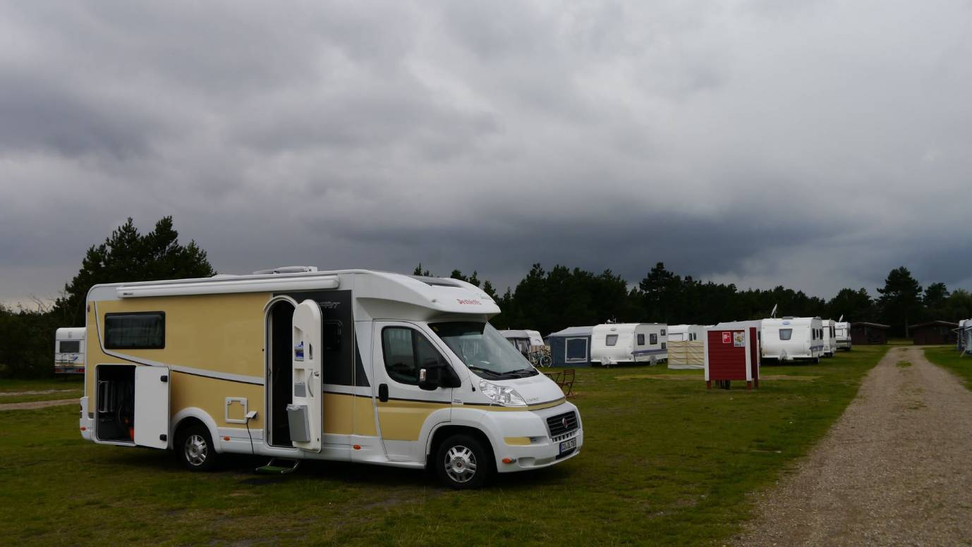 Mittlerweile ist es nach 17 Uhr, die Entscheidung für die Bleibe für die Nacht fällt wieder auf den Campingplatz "Rømø FamilieCamping" auf der Insel Rømø. Wir schaffen es gerade noch vor einem heftigen Regenschauer unser WoMo auf dem Platz abzustellen und den Strom anzuschließen. Der Platz hat sich seit dem letzten Besuch vor 2 Wochen deutlich geleert, was uns persönlich ganz recht ist.