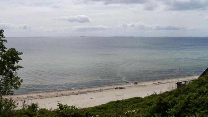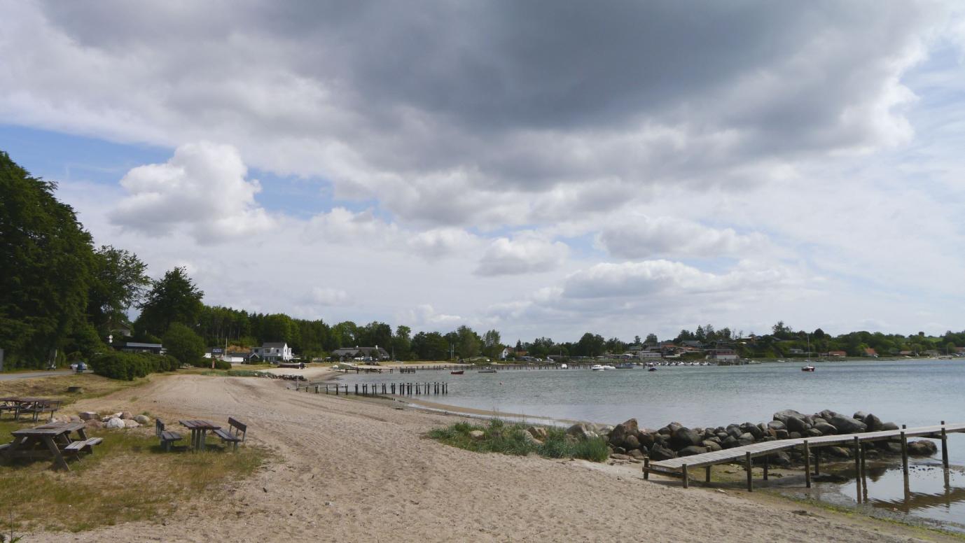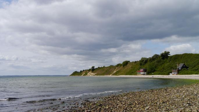 Dann weiter nach Brunbjerg (bei Halk). Wir halten an einem Parkplatz direkt an einer kleiner Steilküste. Natürlich spazieren wir hinab zum Wasser und genießen den einsamen Strand. Leicht verwundert nehmen wir von den kleinen Sommerhäuschen direkt am Wasser Kenntnis
