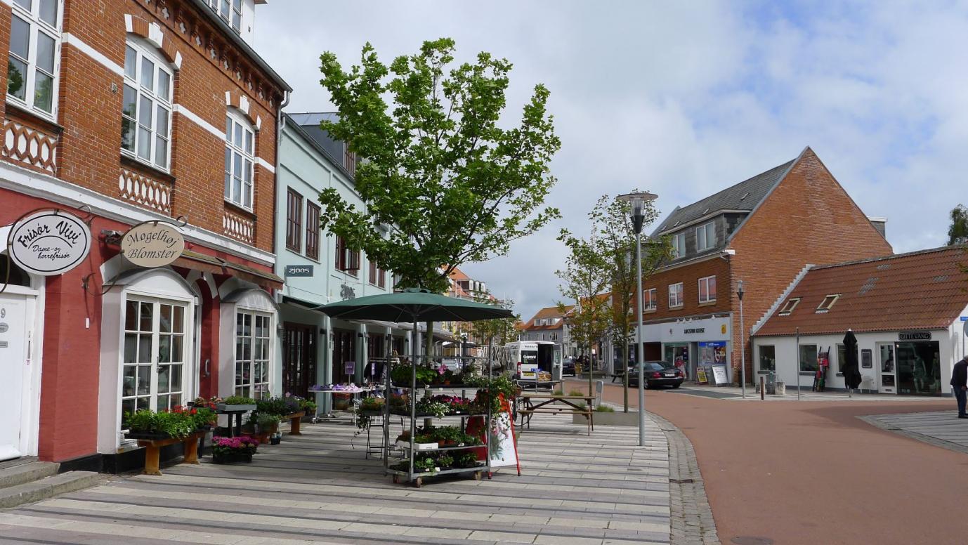 Nach der Ver- und Entsorgung vom Wohnmobil besteigen wir unsere Fahrräder und fahren nach Løgstør hinein. Mit dem Fahrrad geht das ja recht fix und man hat keine Parkplatzsorgen. Wir spazieren die "Einkaufsmeile" auf und ab, schauen in das eine und andere Geschäft und finden sogar ein paar Kleinigkeiten.