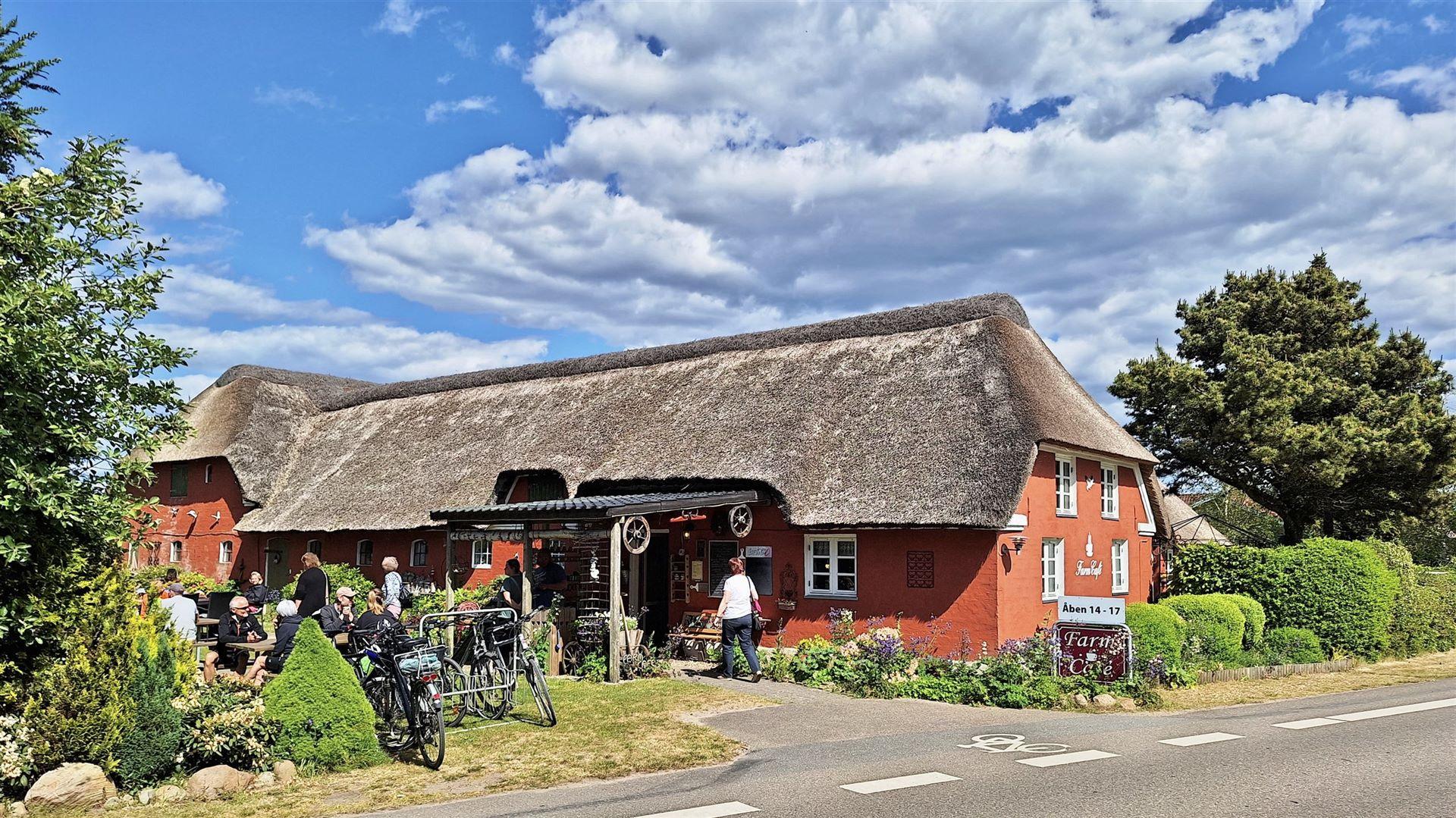 Nach dem ausgedehnten Strandspaziergang kehren wir zum Wohnmobil zurück. Bei einigen von uns macht sich Lust auf Kaffee bemerkbar. Als langjährige Dänemark-Fahrer kennen wir die eine und andere gemütliche Ecke, so z.B. das "Farm Café" bei Houstrup, also nur wenige Kilometer entfernt.