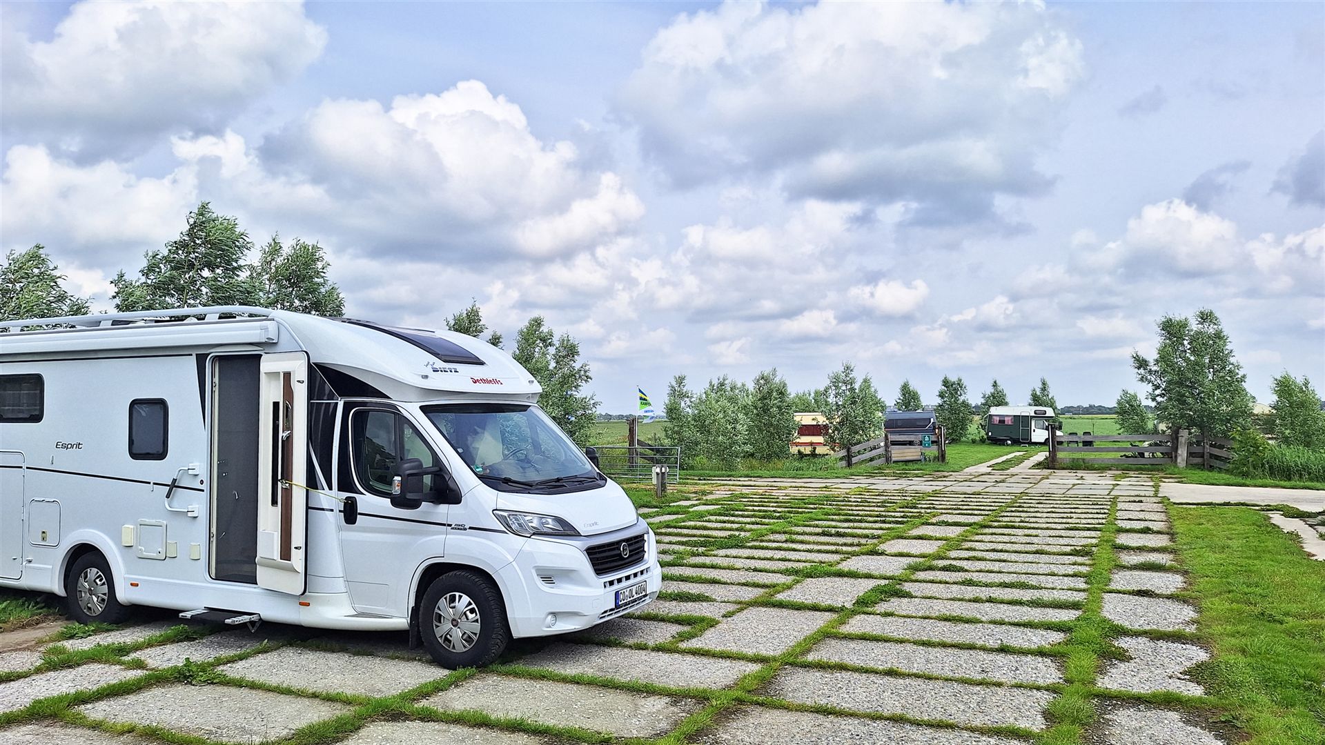 Wir steuern nun den Platz "Camping de Kapberg tuin" an (Link). Ein kleiner Campingplatz in der Nähe von "Spierdijk", der sich in zwei Bereiche aufteilt. Ein Bereich ist mit Wiese, also quasi der Bereich für das eigentliche Camping, der zweite Bereich ist mit Betonplatten befestigt, der ist für Wohnmobile gedacht.