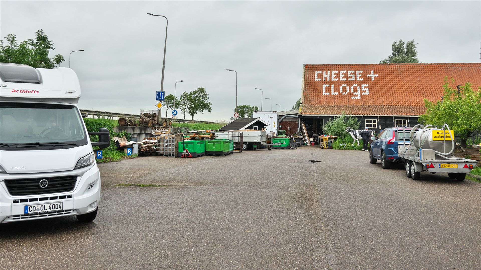 Aber dann geht es los ... zuerst einmal in südlicher Richtung ein ganzes Stück zurück. Südlich von Volendam, nach einer Irrfahrt durch das sehr enge Monnikendam wegen Parkplatzsuche, landen wir bei "Cheese & Clogs - Irene Hoeve" (Link).