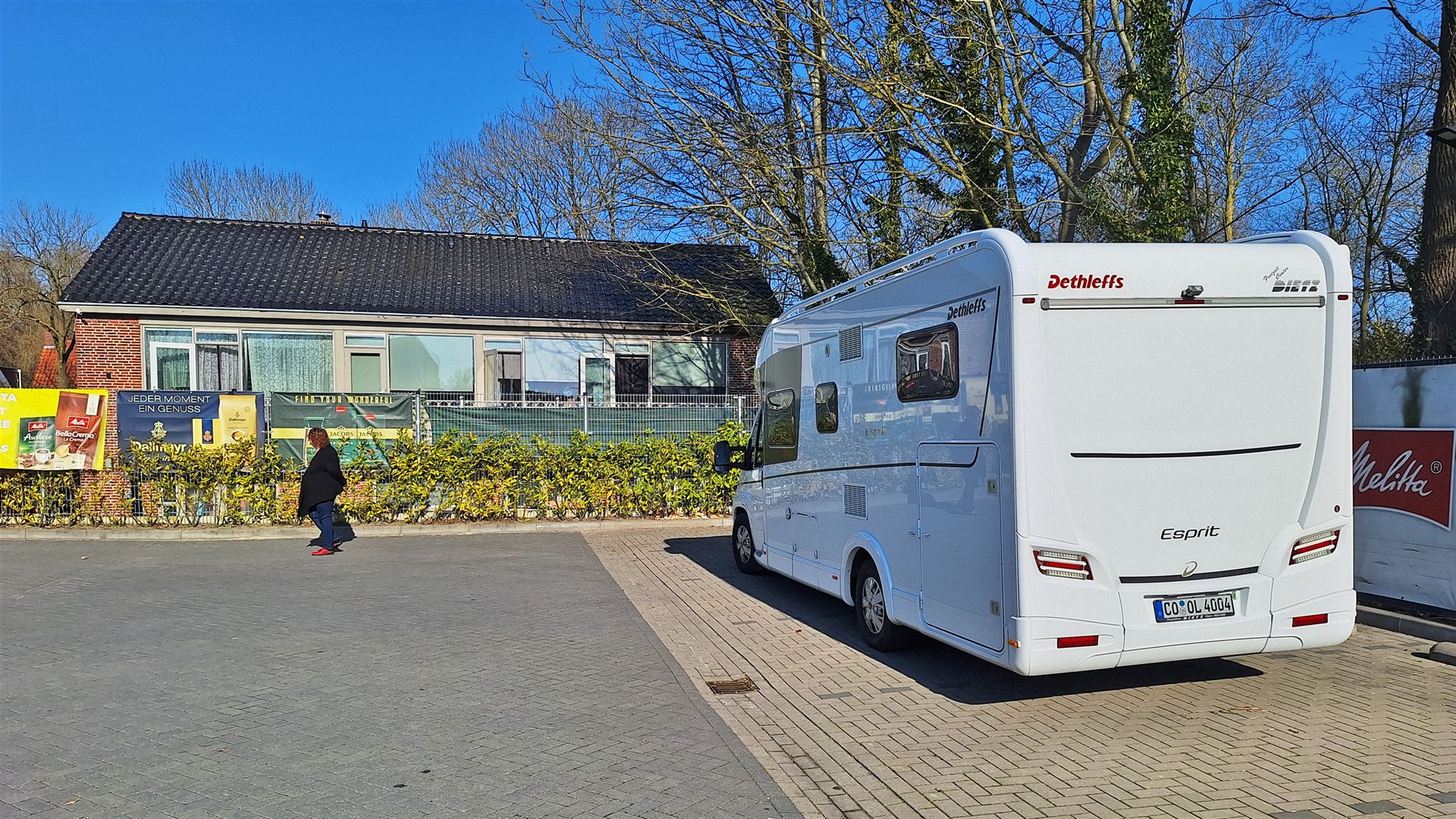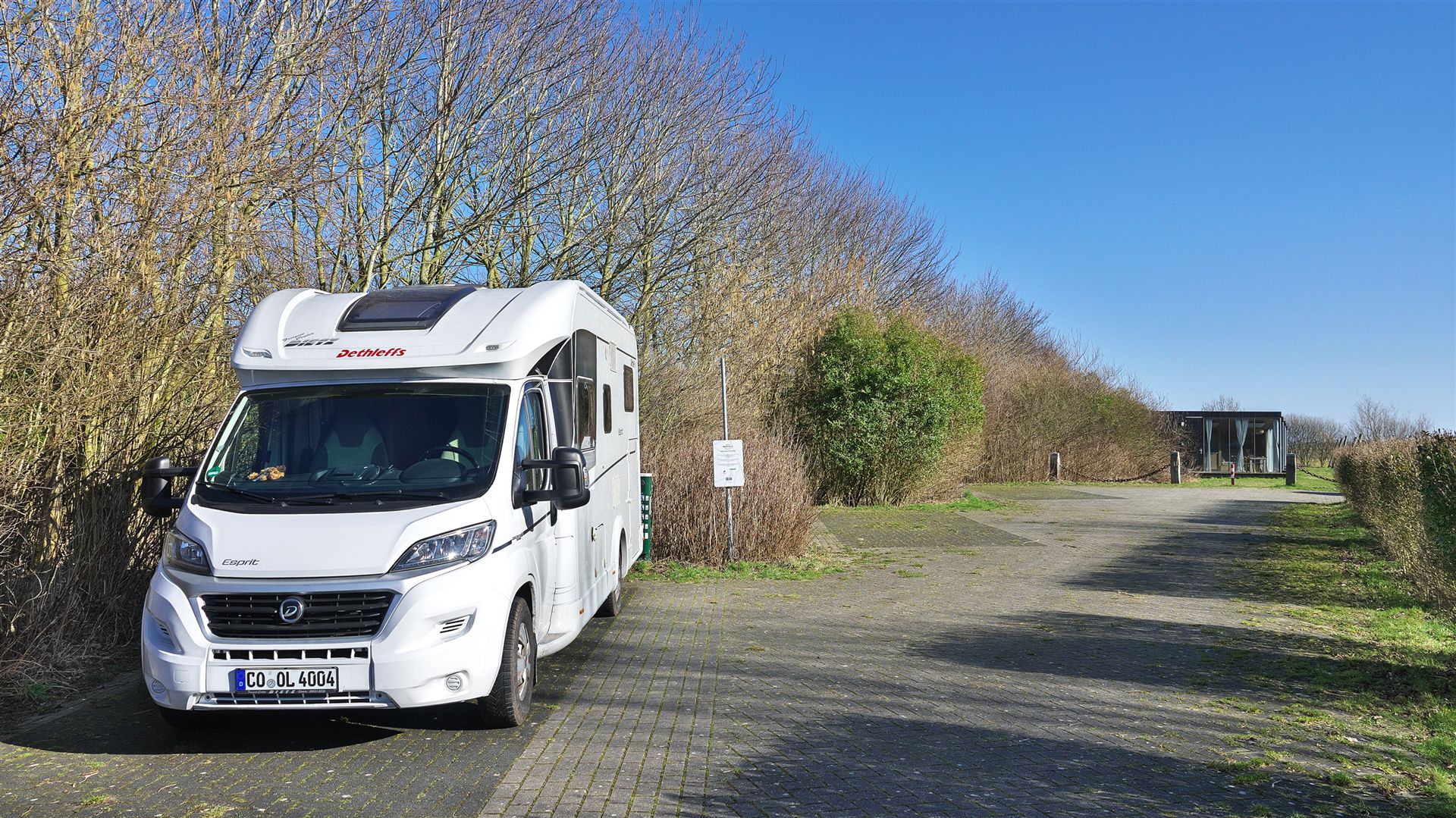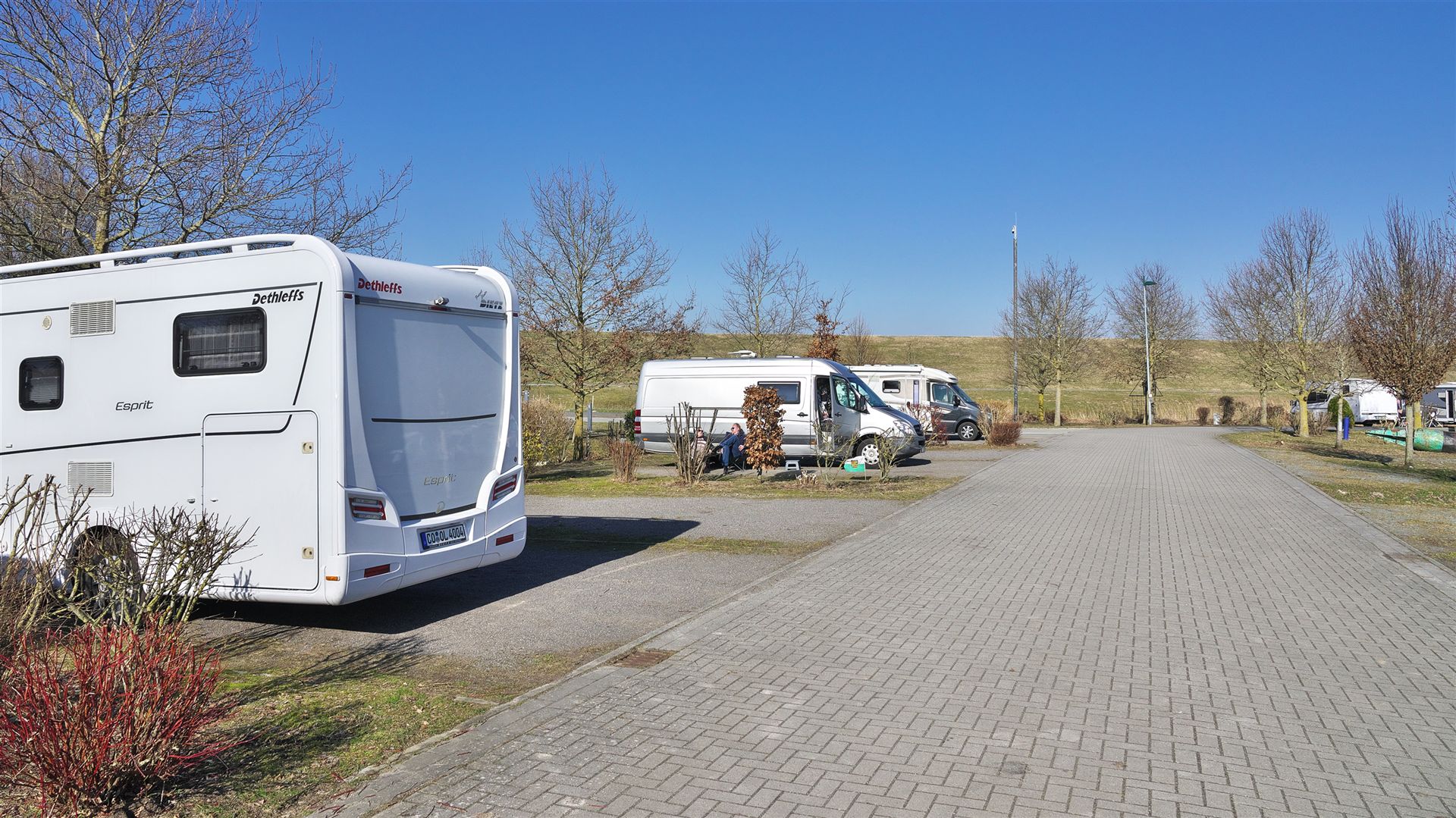 Dieser wurde erst neu angelegt und erfüllt nahezu alle wohnmobilistischen Anforderungen ... der "Wohnmobilstellplatz Werdum" (Link). Als wir ankommen, ist der Platz noch leer, etwas später kommt noch ein Kastenwagen dazu.