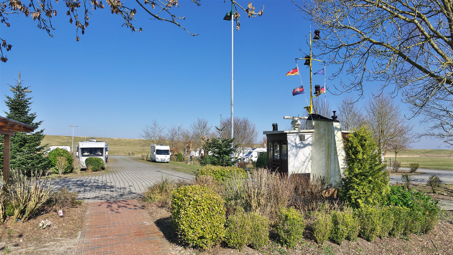 Jetzt aber zurück zu jetzt und heute ... wir erreichen den gewünschten Stellplatz vor Ditzum und dürfen gleich die neue Schrankenanlage benutzen. Plätze sind genügend frei, der Platz ist nur gut zur Hälfte besetzt. So finden wir problemlos einen passenden Platz für uns.