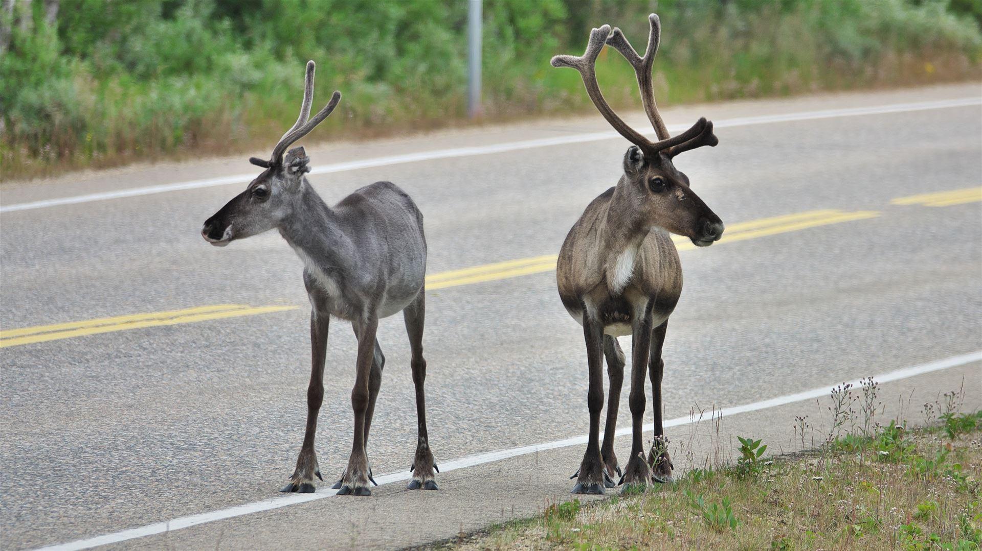 Dann wieder weiter auf der E75 gen Norden. Vor Ivalo haben wir den ersten Kontakt mit frei laufenden Rentieren. Die Viecher haben wirklich keine Angst oder Respekt vor den fahrenden Fahrzeugen. Im Laufe der Fahrt dürfen wir das wiederholt erleben.