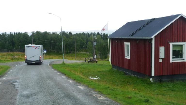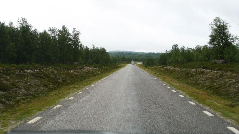 Als wir zum Wohnmobil zurück laufen, fängt es leicht das Regnen an. Im Westen ist der Himmel tiefgrau, das verheißt nichts Gutes. Wir fahren los und halten uns über Mora in Richtung Malung. Ab Mora regnet es dann immer kräftiger. Die Spurrinnen auf der Straße zwingen einen zum ZickZack-Kurs, um das Risiko vom Aquaplaning gering zu halten.
