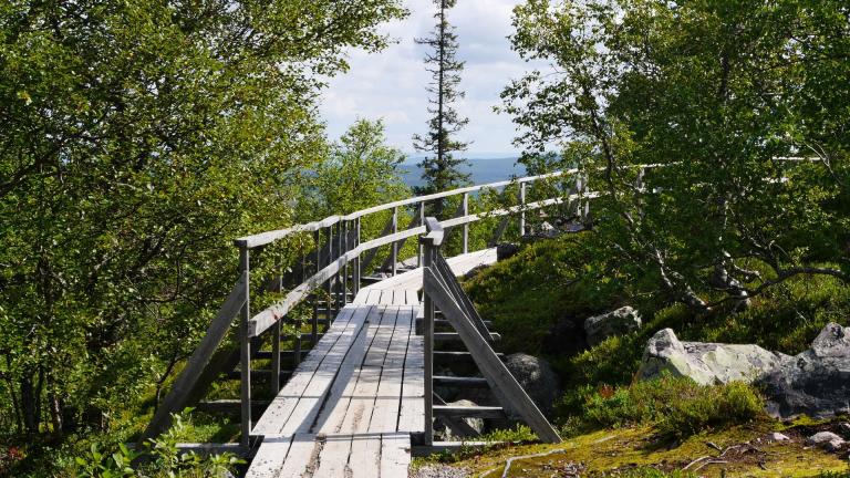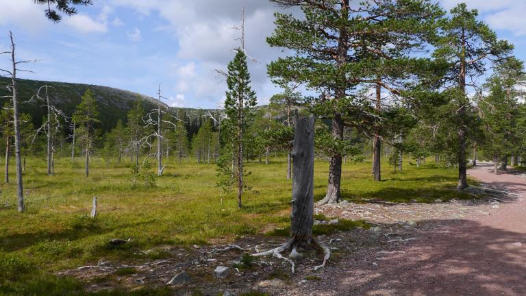 Dann spazieren wir den Rundweg weiter, der uns an Geröllfelder, durch tiefe Wälder und Moore führt. So gelangen wir dann nach knapp 2 Stunden Rundweg am Ausgangspunkt an und gönnen uns an der Berghütte eine kleine Stärkung in Form von Waffel mit Moltebeeren, Schlagsahne und Kaffee. Das Ganze für 60 SEK (ca. 7 Euro), das ist ein fairer Preis, lecker war es außerdem !