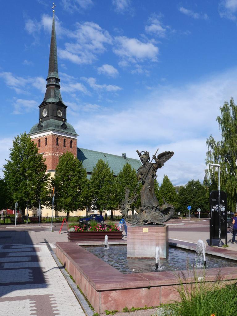 Am Stadtrand finden wir einen großen Parkplatz direkt am Siljan See, da hier schon einige Wohnmobile stehen, scheint es ein geduldeter Übernachtungsplatz zu sein. Von hier aus spazieren wir in die Stadt, besichtigen die Kirche und landen in einem Restaurant, in dem wir für 89 Sek (ca. 9,50 Euro) Büffet essen können (inkl. Getränke). Das Essen ist zwar nicht so das Leckerste, aber macht satt. Das war uns erstmal das Wichtigste.
