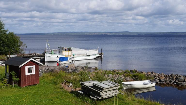 Wir fahren weiter an der Westseite des See's gen Norden. Bei Gesunda biegen wir ab auf die Insel Sollerön. Den dortigen Campingplatz lassen wir rechts liegen, da wir nach zwei Nächten auf einem CP nun wieder auf einen Stellplatz möchten. So wird unser Ziel das auf der nordöstlichen Seeseite liegende Nusnäs mit dem schönen Bootshafen. Im Jahr 2012 war dieser Platz für zwei Nächte unser Domizil gewesen.