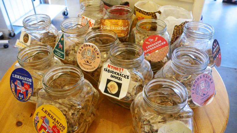 Hier hat die Firma Leksand Knäckebröd ihren Sitz und einen Werksverkauf. Dieser hat auch am Sonntag geöffnet. Gemäß unserem Tourplan kaufen wir nein genauer: Mona ordentlich ein. So kommen wir mit drei großen und vollen Plastikbeuteln zurück zum Wohnmobil.