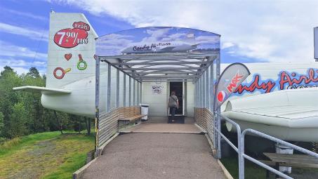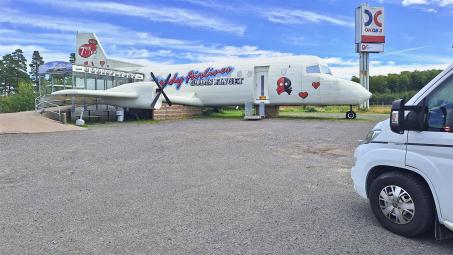 Bei "Skånes-Fagerhult" biegen wir ab ... hier steht ein richtig süßes Flugzeug herum ... von der "Candy Airlines" (Link) ... auch "Godisflyget" genannt. Uns wird klar ... hier waren wir schon einmal vor vielen vielen Jahren ... aber wir haben definitiv nicht mehr gewusst, wo das war. Jetzt haben wir es also erneut gefunden.