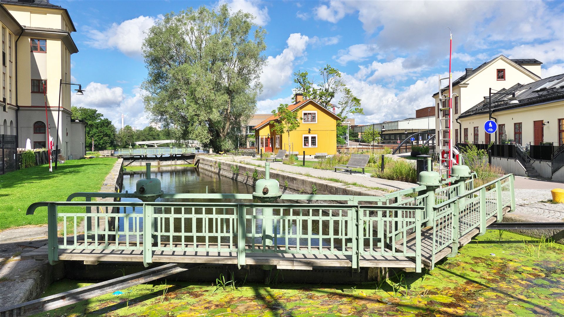 - Naturpfad, auf dem Sie die wunderschönen Gebäude und die Umgebung entlang des Flusses Arboga sehen können.