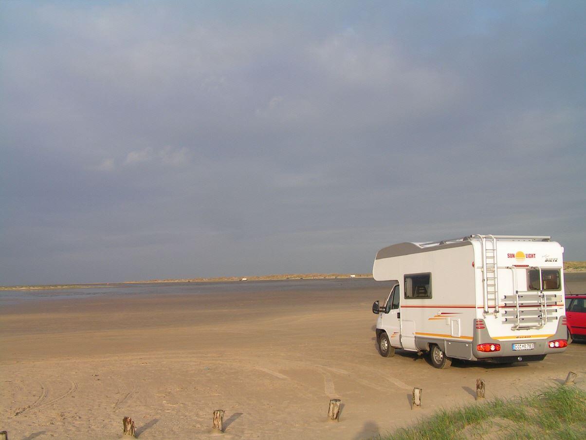 Über Henne Strand landen wir dann in Vejers Strand. Auf einem geschützten Parkplatz im Ortszentrum parken wir unseren Sunlight. Hier werden wir die kommende Nacht verbringen. Schon während des Abends wird der Wind immer stärker und stärker ...