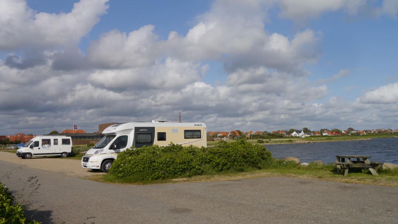 Von hier aus brechen wir nun auf mit dem Ziel, Nordjütland zu verlassen. Über die Oddesund Brücke fahren wir gen Süden. Unser Ziel ist Ringkøbing, genauer gesagt, der dortige Stellplatz. Pünktlich zum Abendessen treffen wir dort ein. Der Wind ist hier ein wenig gemäßigter.