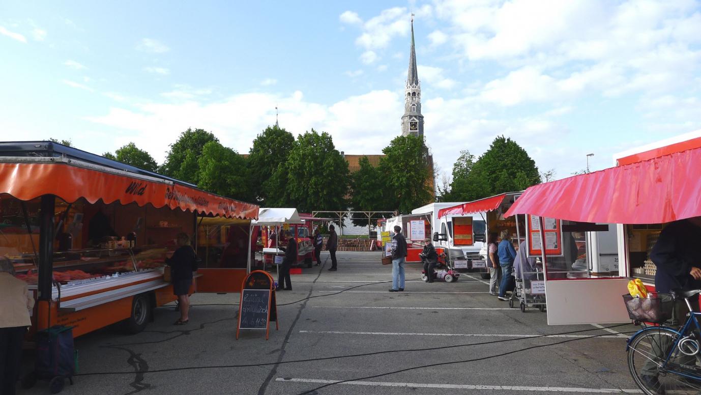 Nach einer dann doch recht ruhigen Nacht klingelte morgens um 7 Uhr der Wecker. Rainer hatte Mona versprochen, auf der Rückkehr dem Heider Wochenmarkt einen Besuch abzustatten. Kurz vor halb Acht waren wir dann auf dem Markt. Der Parkplatz war noch recht leer, so fanden wir ohne Probleme einen passenden Platz für unser Wohnmobil.