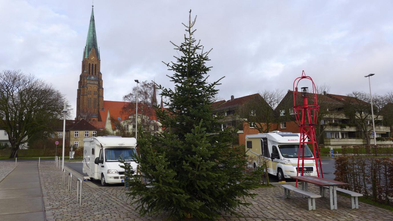 So spazieren wir in die Innenstadt. Gemütlich geht es in die weihnachtlich geschmückten Gassen von Schleswig hinein. Wir besichtigen das alte Mühlrad, welches etwas versteckt am Rande der Altstadt zu finden ist. Dann weiter durch die Stadt. Abschließend noch ein Rundgang durch das alte Stadtviertel "Holm", bevor wir zurück im Wohnmobil bei einer Tasse Kaffee unsere Weihnachtsplätzchen genießen.