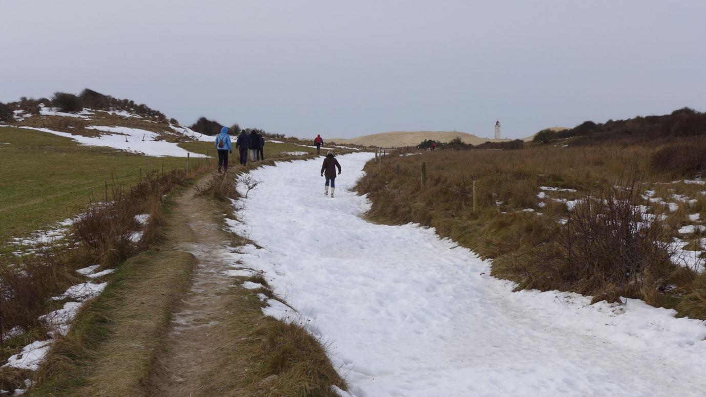 Der Weg zum Turm hin ist heute nicht ganz unkritisch. Gefrorener Schnee und Eis machen den Spaziergang zu einer Rutschpartie, aber wir schaffen es ohne Probleme wieder heil zurück zum Wohnmobil zu kommen.
