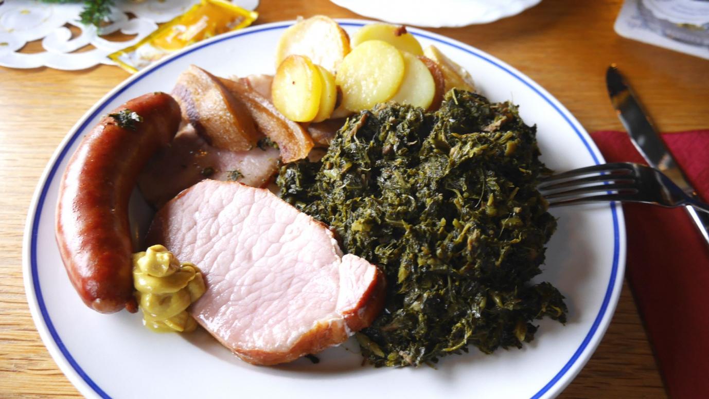 Da uns das kulinarische Angebot am Weihnachtsmarkt nicht so ganz entsprach, gingen wir zurück zum alten Hafen, in welchem das Schiff "Nordertour" als Restaurant vor Anker liegt. Schon auf dem Weg in die Stadt haben wir hier etwas von "Grünkohl & Pinkel" gelesen ...