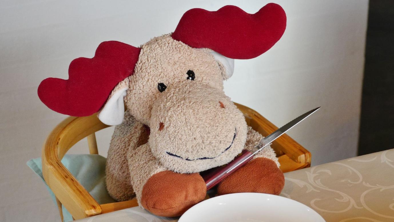 Heute kommen wir vergleichsweise spät aus den Federn. Erst gegen 10 Uhr sitzen wir an dem großen Frühstückstisch. Der Elch (unser bekanntes Maskottchen) schiebt schon mächtig Kohldampf.