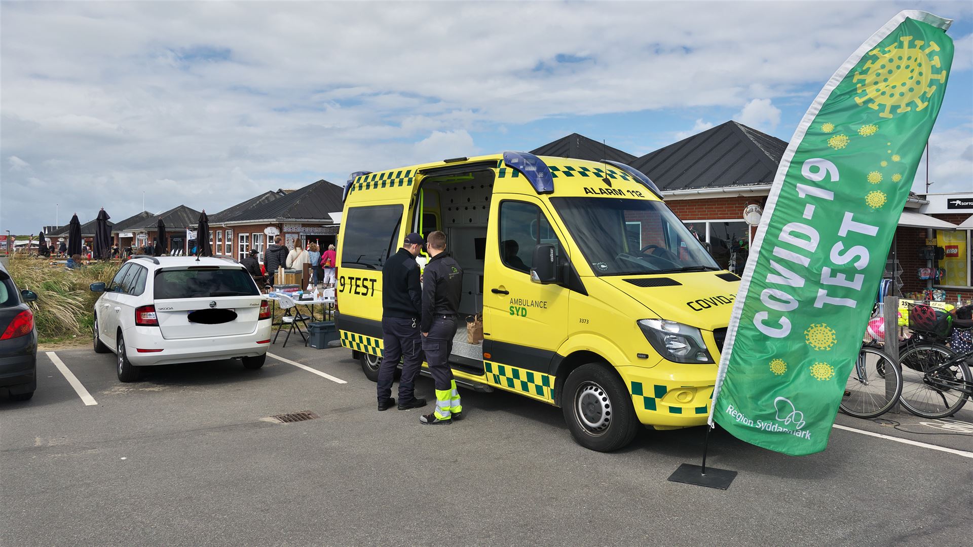 Am Parkplatz entdecken wir ein Fahrzeug der Ambulanz mit "Covid-19" - Aufklebern. Hier wird ein kostenloser Test angeboten, nicht nur für die dänischen Mitbürger. Da wir aber die letzten Monate sehr zurückgezogen und ebenso vorsichtig gelebt haben, nehmen wir das Angebot nicht in Anspruch. Auch während dieser Tour wollen wir Abstand wahren und den Mitmenschen so gut es geht aus dem Weg gehen.