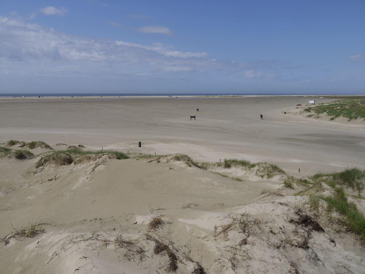 Wieder unten angekommen spazieren wir durch die Dünen zum Strand, an diesem entlang bis zum Militärgebiet und durch die Dünen wieder zurück.