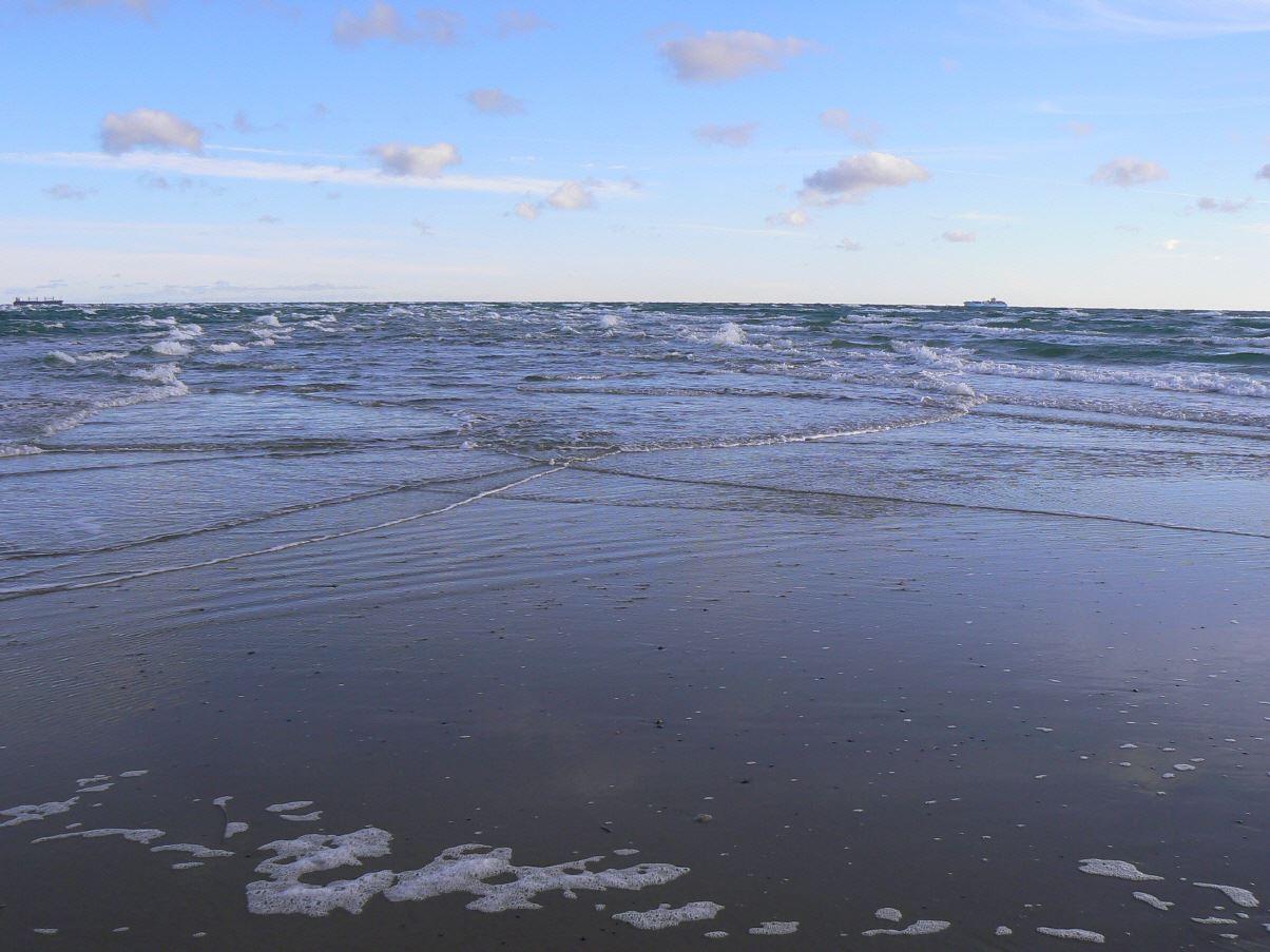 Der Bummel führt uns durch die Dünen zum Strand und der Mole. Hier tobt das Meer ganz schön heftig. Immer wieder überschlagen Wellen die Mole, die sonst problemlos zu Fuß begangen werden kann.