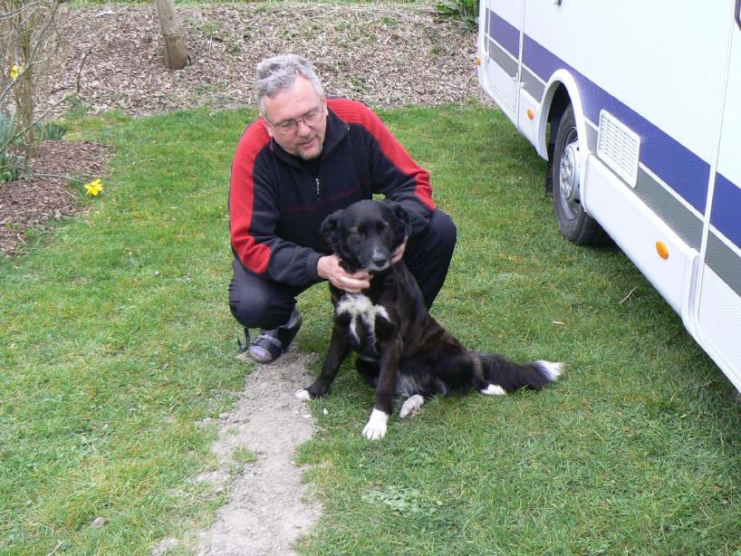 Trotzdem, oder gerade deshalb, war es schon fast 09:00 Uhr, bis wir endlich aus den Federn kamen. Beim Öffnen der WoMo-Tür ein kleiner Bums ... eine feuchte Schnauze war im Weg, die Nachbarshündin war wieder auf Suche nach Streicheleinheiten und damit bei uns genau richtig *freu* !