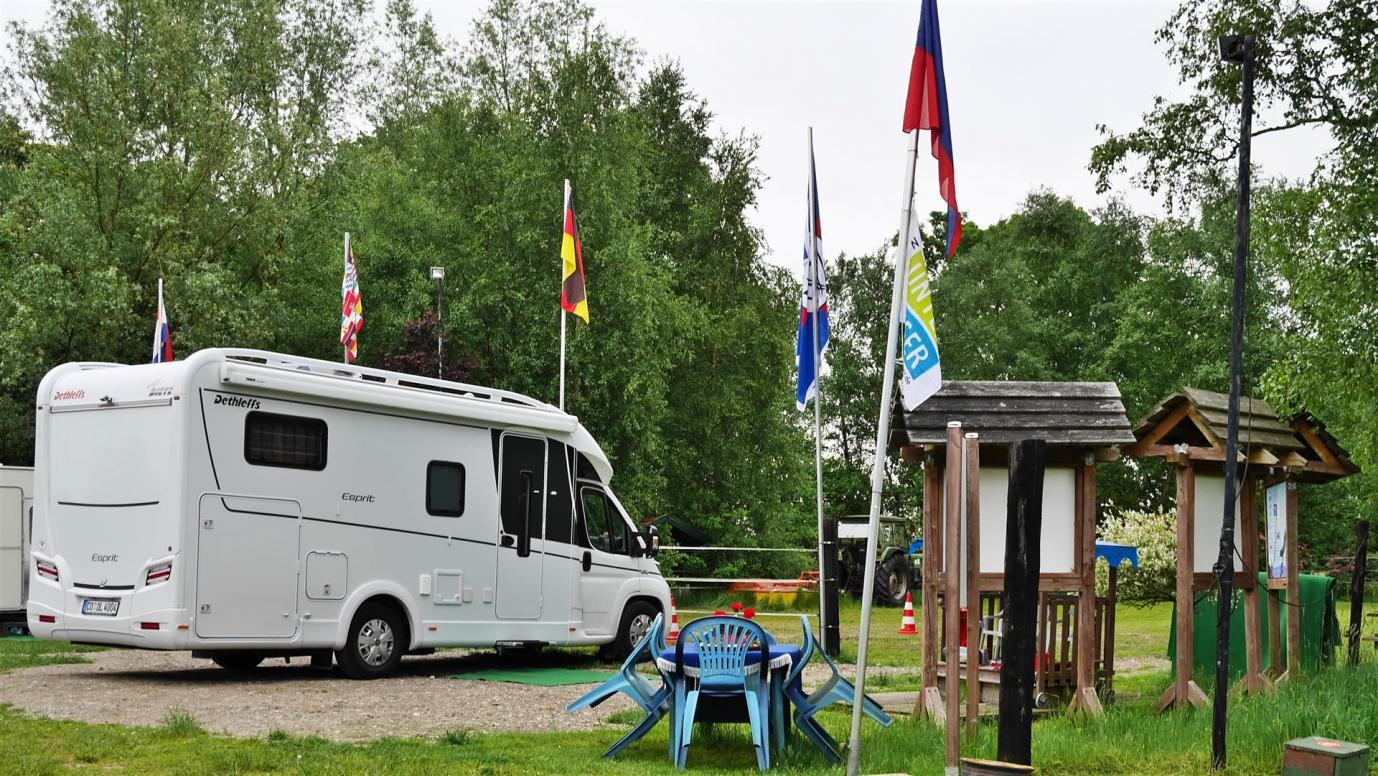 In Folge suchen wir nach Alternativen und stoßen auf den Ort Westernholt, ca. 10km weiter. Der Stellplatz am Schützenhaus ist kostenlos, nur für Strom und Ver- und Entsorgung muss bezahlt werden. Das ist o.k. für uns. Im Verlauf des Abends am Stellplatz zieht noch ein ordentliches Gewitter über uns hinweg, davon lassen wir uns aber nicht wirklich stören.
