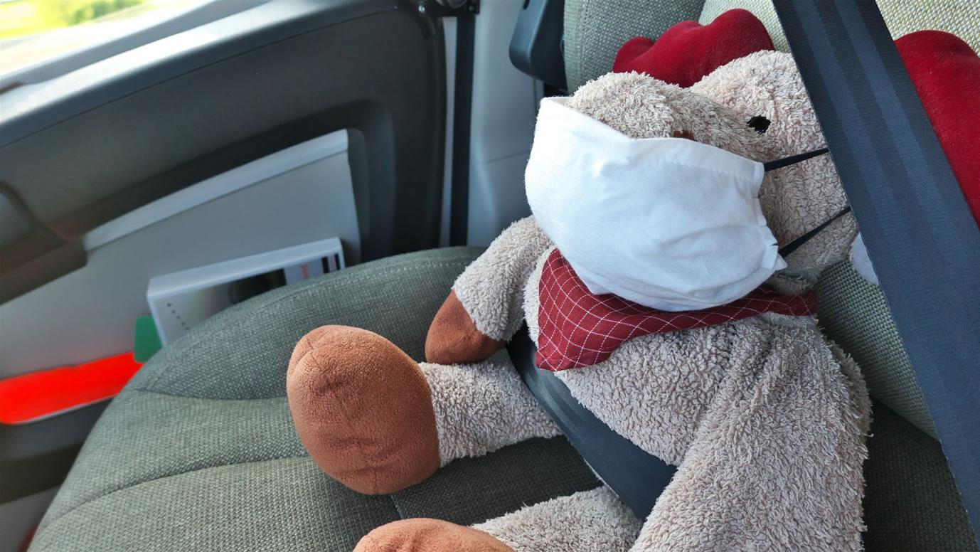 Morgens um halb sieben ist die Welt noch in Ordnung, zumindest wenn man um diese Zeit in den Urlaub startet. Während Mona unseren PKW steuert, hat Rainer einen anderen Beifahrer ... unser stetiger Begleiter "Elli der Elch" sitzt ordentlich angeschnallt auf dem Beifahrersitz und muss einen Mund-Nasen-Schutz tragen ... damit ist er wenigsten leise *hihi*.
