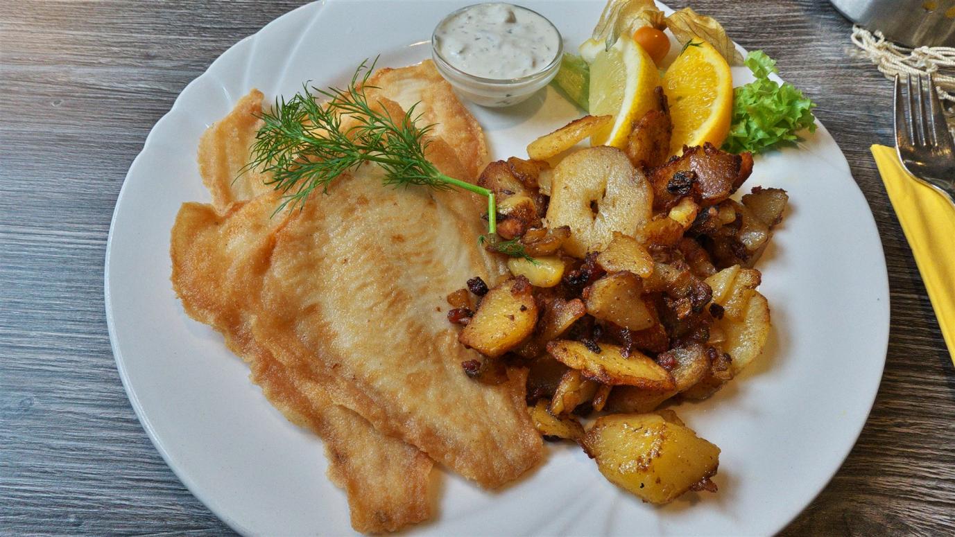 Zum Abendessen gibt es dann natürlich den heute morgen gekauften Fisch. Dazu Bratkartoffeln ... so richtig lecker ! Das ist ein guter Abschluss für unsere Wintertour über den Jahreswechsel hinweg.