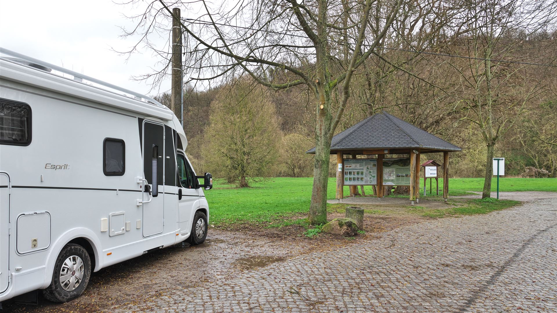 Eine kurze Regenpause nutzen wir für einen Platzrundgang. heute, am 01. April 2023 kostet die Nacht hier 12 Euro, der aktuelle Preis ist zwei Wochen später auf 20 Euro angehoben worden, ohne das sich irgendetwas geändert hat ... das nennen wir Abzocke !!!