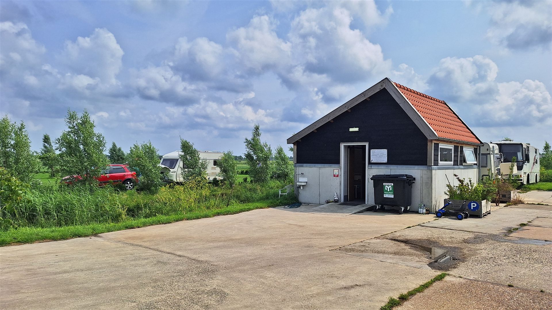 Wir steuern nun den Platz "Camping de Kapberg tuin" an (Link). Ein kleiner Campingplatz in der Nähe von "Spierdijk", der sich in zwei Bereiche aufteilt. Ein Bereich ist mit Wiese, also quasi der Bereich für das eigentliche Camping, der zweite Bereich ist mit Betonplatten befestigt, der ist für Wohnmobile gedacht.