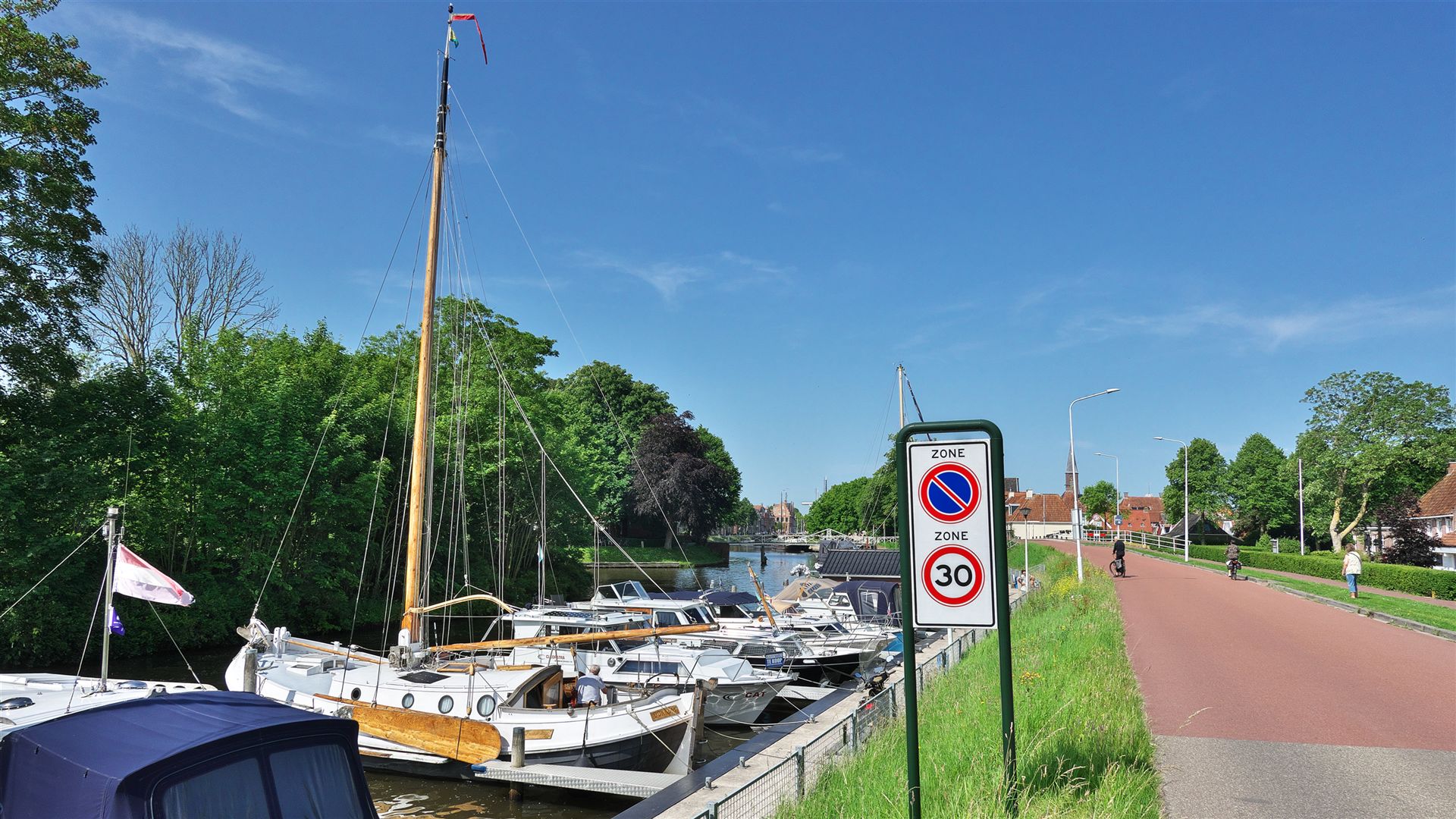 Etwa in der Mitte der Dammstrecke liegt "Breezanddijk" (Link) ... ein Weiler, der zur Gemeinde Wûnseradiel gehörte, die am 1. Januar 2011 in der neuen Gemeinde Súdwest-Fryslân aufgegangen ist. Hier ist der Yachthafen "Flechthaven Breesândyk Súd" (Link) zu finden, an dem wir einen kurzen Zwischenstopp einlegen.