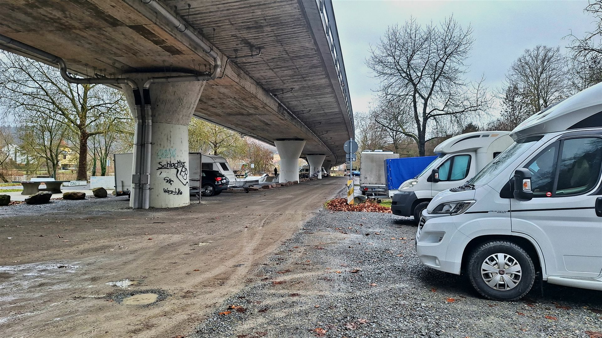 Am späten Nachmittag kehren wir zum Stellplatz unter der Brücke zurück ... es regnet übrigens wieder einmal. Immerhin haben wir es geschafft, einen schönen Spaziergang zu machen, das ist ja wenigstens etwas.