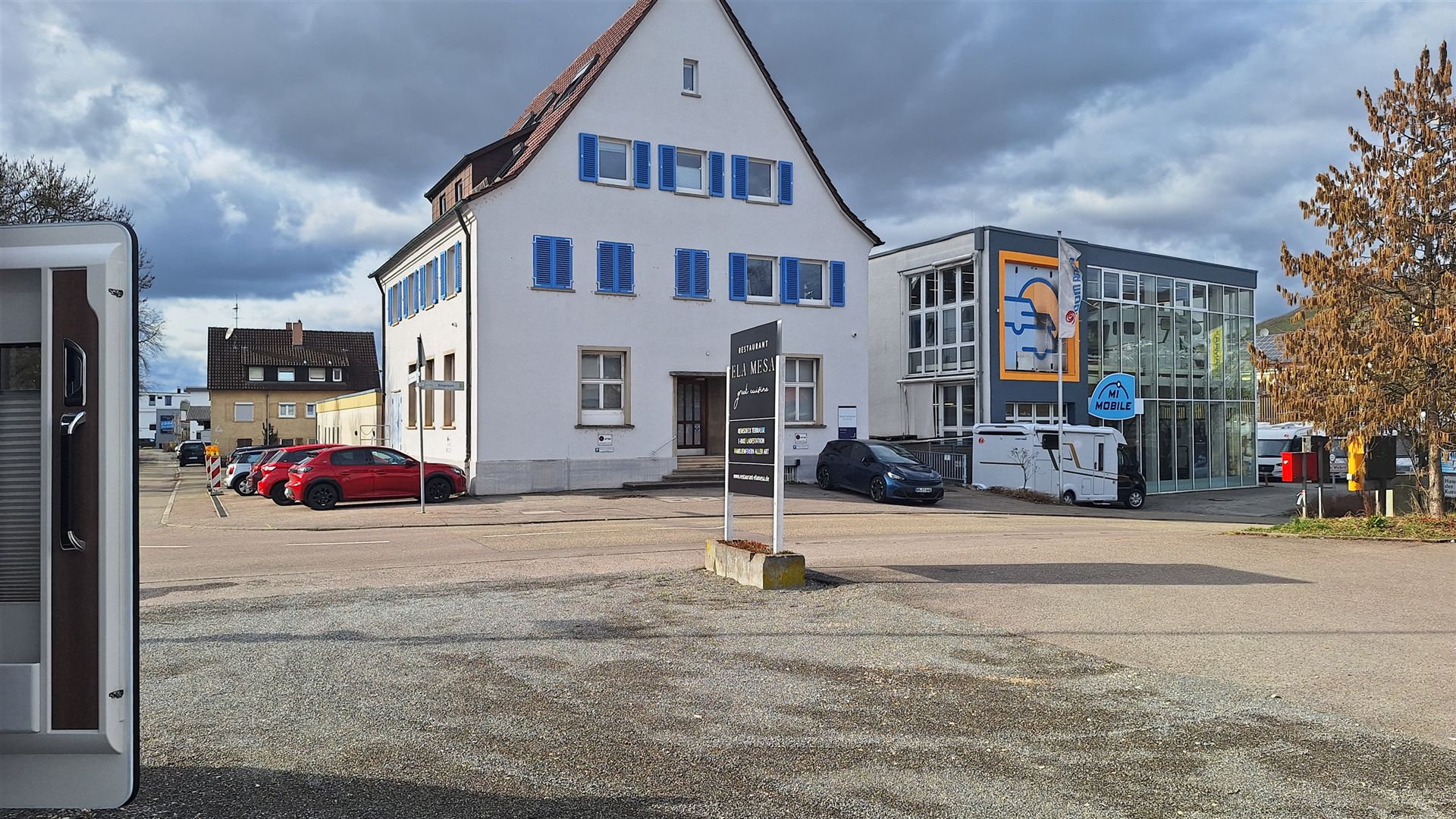 Ein paar Stunden später erreichen wir den Ort "Remshalden-Grunbach" und damit auch einen der großen Händler der Marke "Eura Mobil" (Link). Parken auf dem Firmengelände praktisch unmöglich, der Hof ist rappelvoll mit neuen und gebrauchten Fahrzeugen ... wir ziehen uns zurück und parken gegenüber bei einem Restaurant.