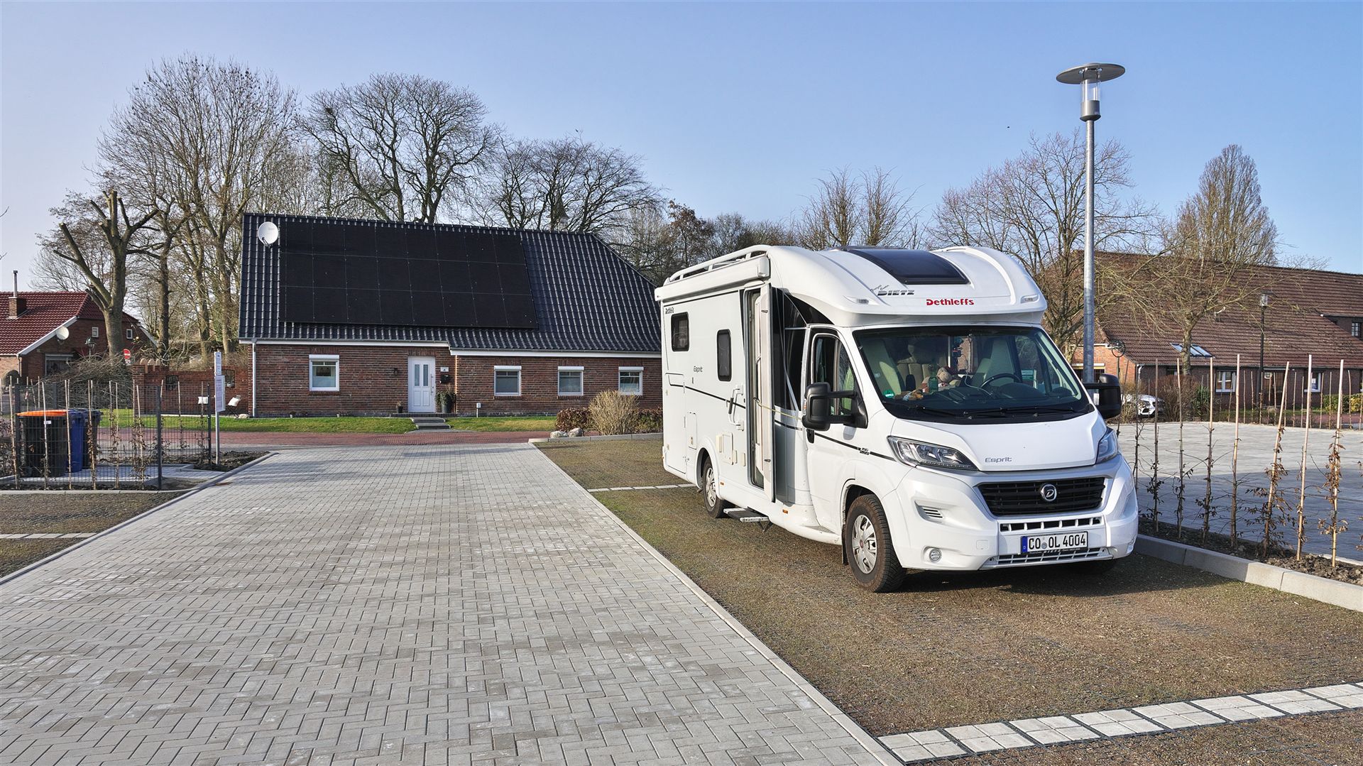 Dieser wurde erst neu angelegt und erfüllt nahezu alle wohnmobilistischen Anforderungen ... der "Wohnmobilstellplatz Werdum" (Link). Als wir ankommen, ist der Platz noch leer, etwas später kommt noch ein Kastenwagen dazu.