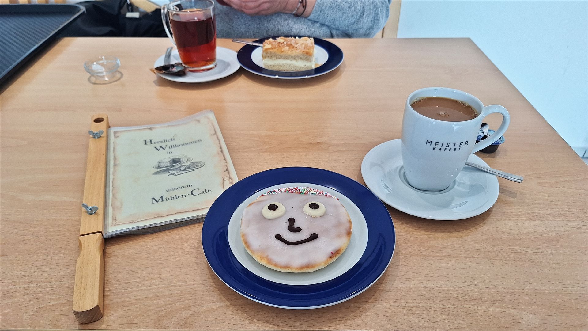 Wir können es nicht verhindern ... es zieht uns förmlich ins Café neben der Mühle. Ein verrückter Amerikaner und ein leckerer Kaffee kommen uns dort gerade recht.