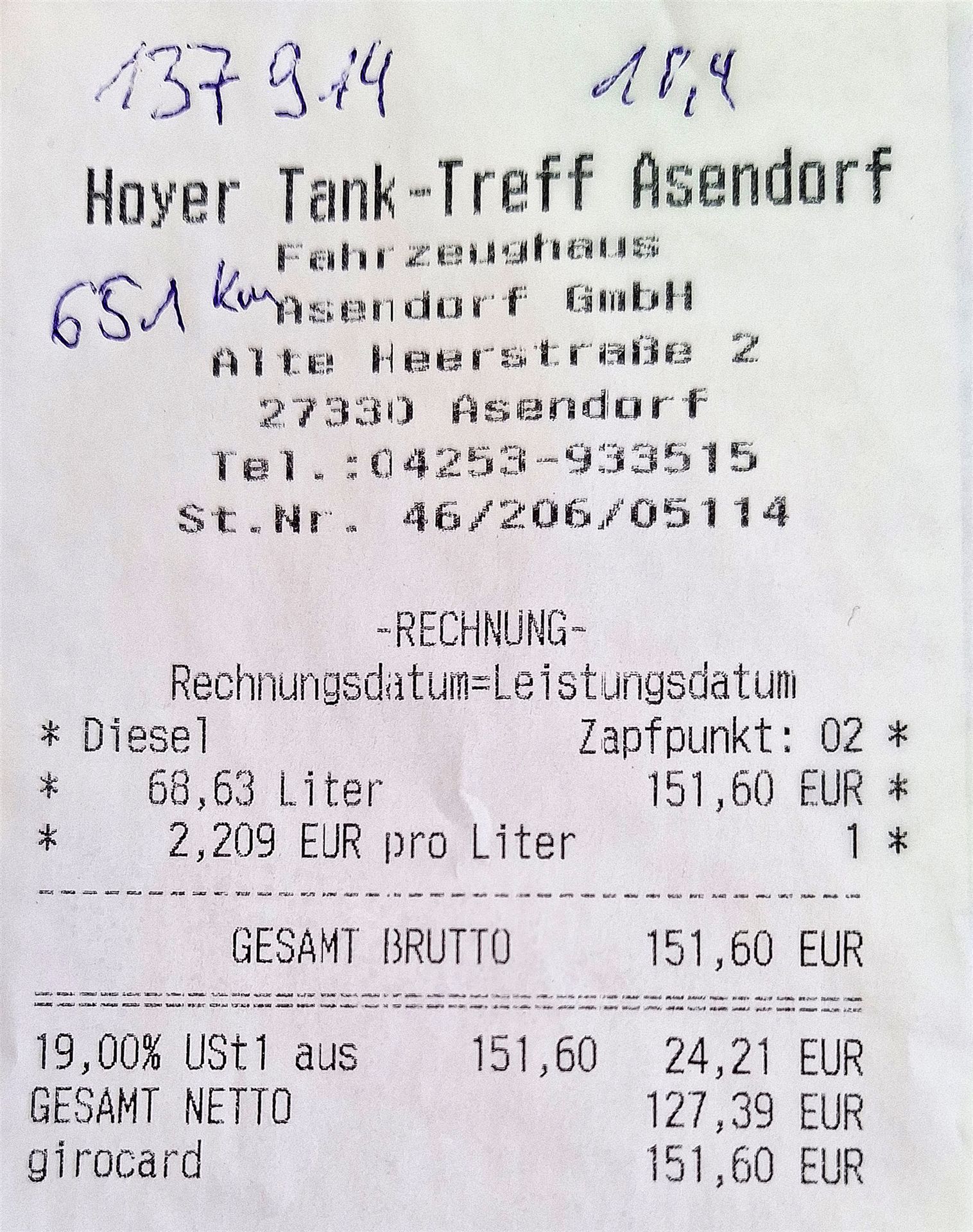 Die Preissteigerung von teilweise über 50 Cent pro Liter treiben die Reisekosten um 30% nach oben ... das ist nicht ohne. Da sind wir doch mal gespannt, wie das Thema weiter geht. Unter solchen Bedingungen müssen wir bis auf weiteres von großen Touren, wie z.B. die angedachte Tour "Nordkap 2.0" im Sommer 2026 streichen.