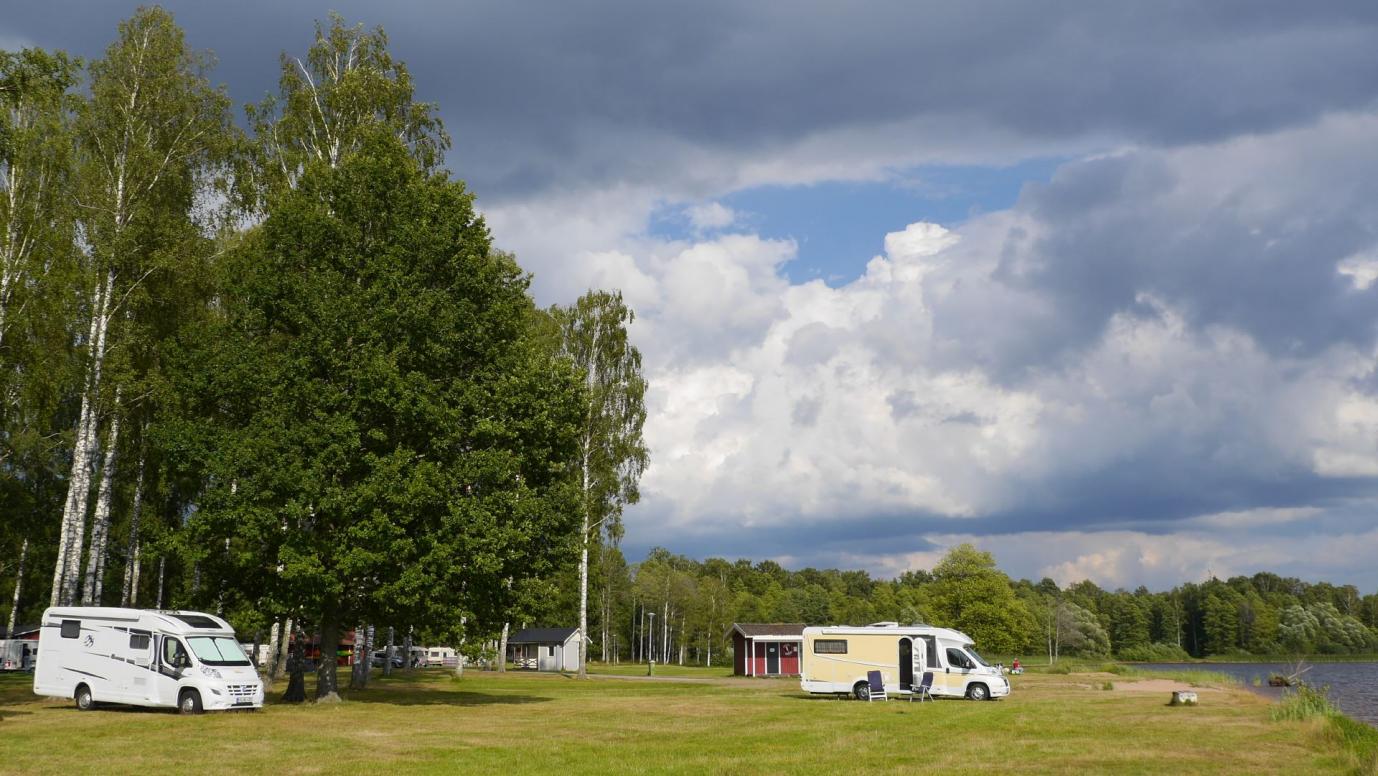 Mittlerweile ist es schon wieder später Nachmittag. Wir fahren (wie geplant) nach Hultsfred auf den Campingplatz der letzten Nacht. Unterwegs ein kräftiger Gewitterschauer, aber am Campingplatz ist es sonnig, nur im Osten hängen dunkle Wolken.
