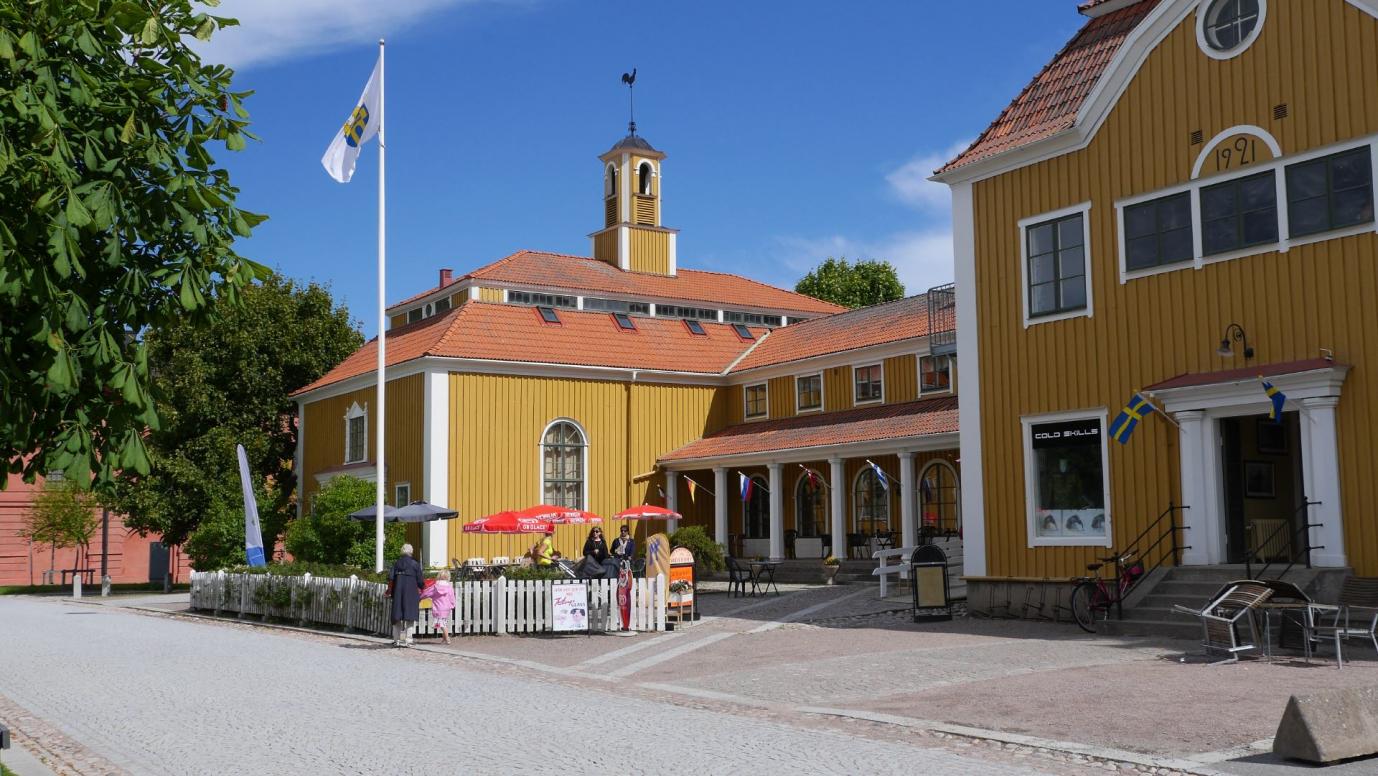Erstes Ziel für heute ist die kleine Stadt Hjo am Vättern See. Hier spazieren wir in die Trästaden (Holzstadt) und gelangen so über den Marktplatz zur "Svenska Kyrkan Hjo". Nach deren Besichtigung laufen wir dann weiter und kommen zu dem schönen Hafengebiet, welches einen herrlichen Blick zum Vättern See erlaubt.