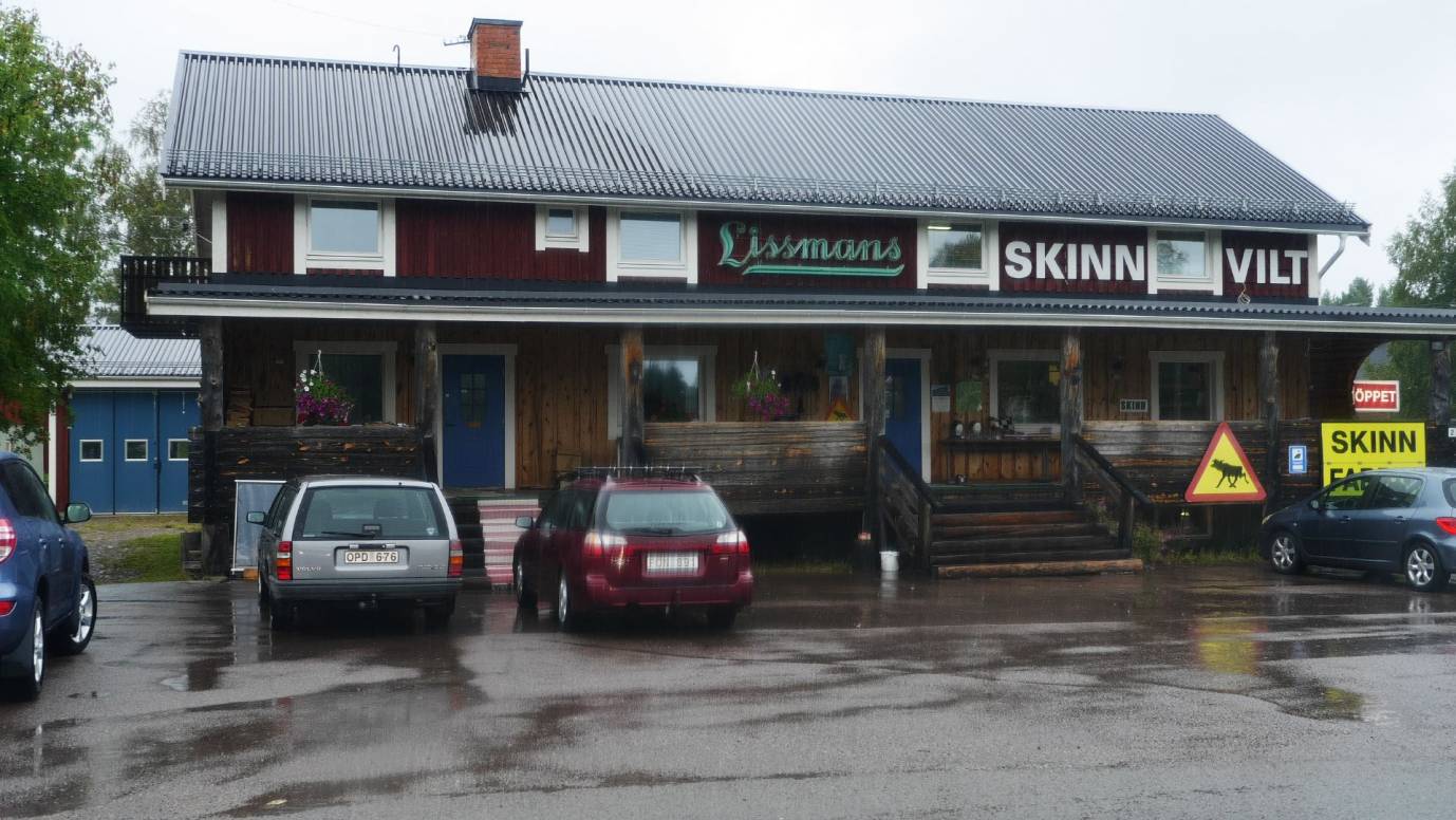 Einige Kilometer hinter Malung (in Malungsfors) kommen wir an einen Lissmans Skinn & Vilt - Laden und halten an. Es regnet in strömen ! Heraus kommen wir mit einem Paar Winterhandschuhe aus Elchleder für Rainer. Kein Schnäppchen, aber toll gearbeitet und super warm (mit Innenfutter).