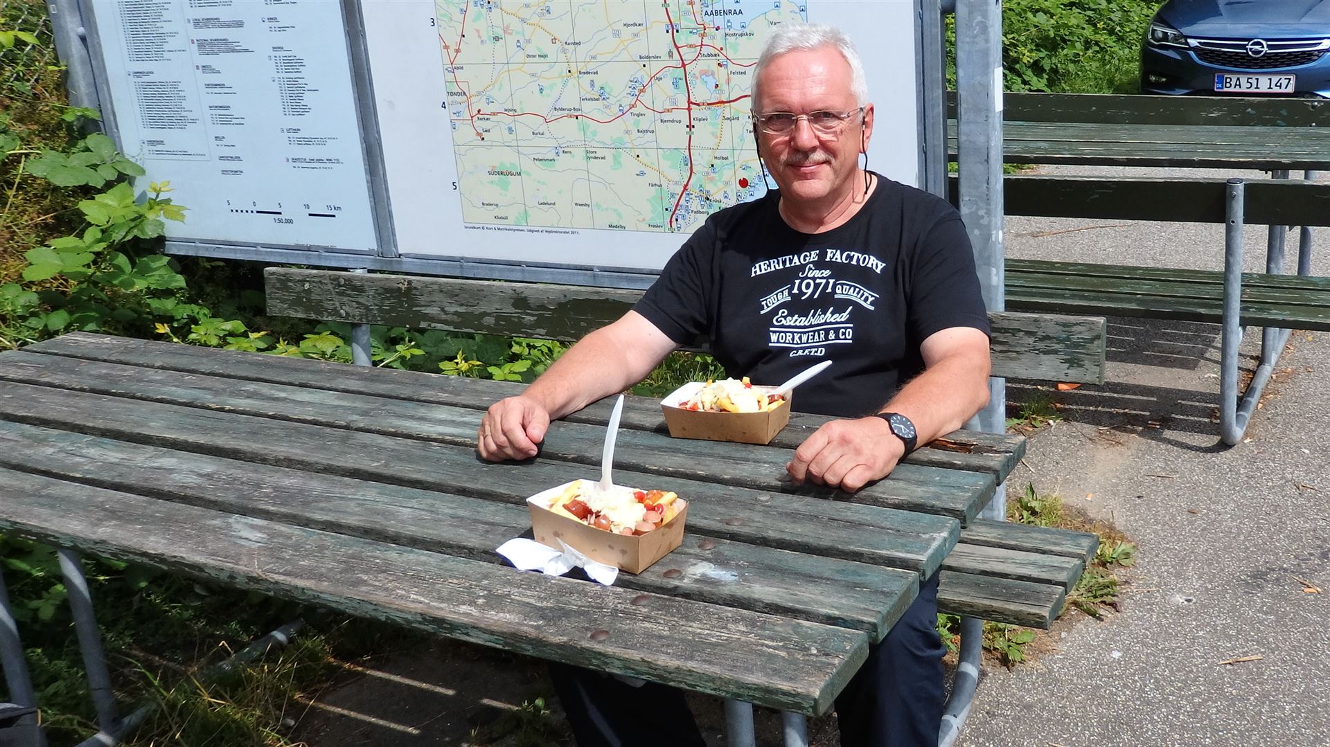 Ein obligatorischer Stopp führt uns nach Sønderhavn zu „Annies Kiosk“. Leider kommen wir einen Tick zu spät, und ca. 30 Jugendliche stehen vor uns an …, nach einer gefühlten Ewigkeit bekommen wir dann unsere Portionen „Pølsemix“ und lassen sie uns in der warmen Sonne schmecken.