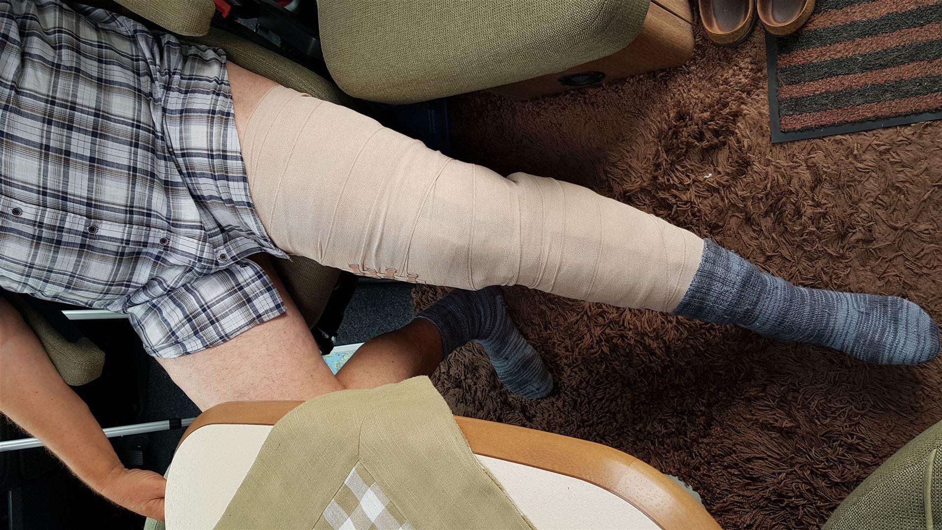 Telefonische Aussage: es ist nichts gebrochen, Bein hochlagern, morgen zum Arzt gehen ...