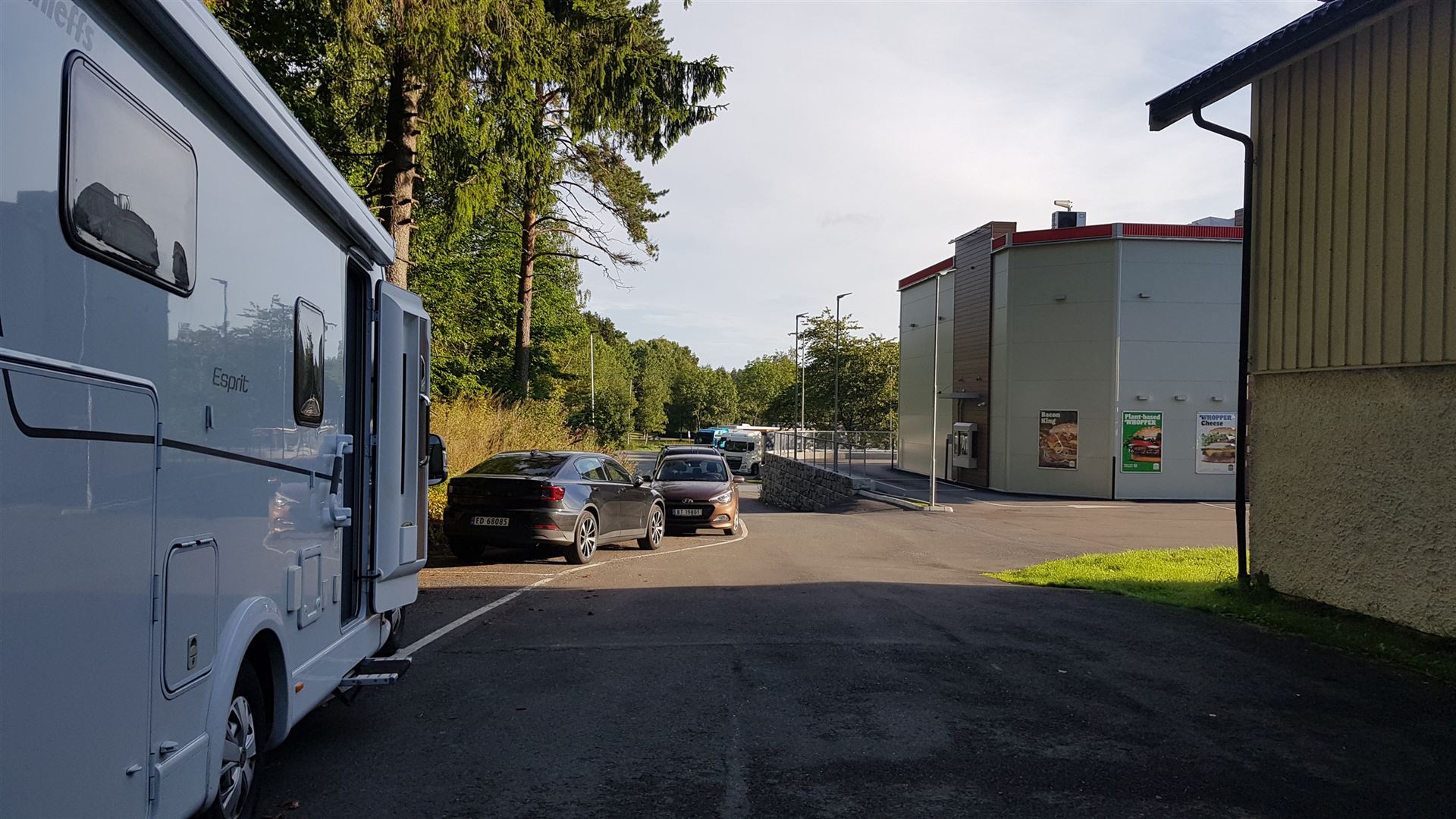 Der Fahrer trifft gegen neun Uhr morgens bei uns am Campingplatz ein. Ein paar schriftliche Details müssen noch geklärt werden, dann geht es los. Heute werden wir noch bis in den Großraum Oslo fahren und dort eine Übernachtung einlegen. Der Fahrer geht übrigens immer in ein Hotel zum übernachten.