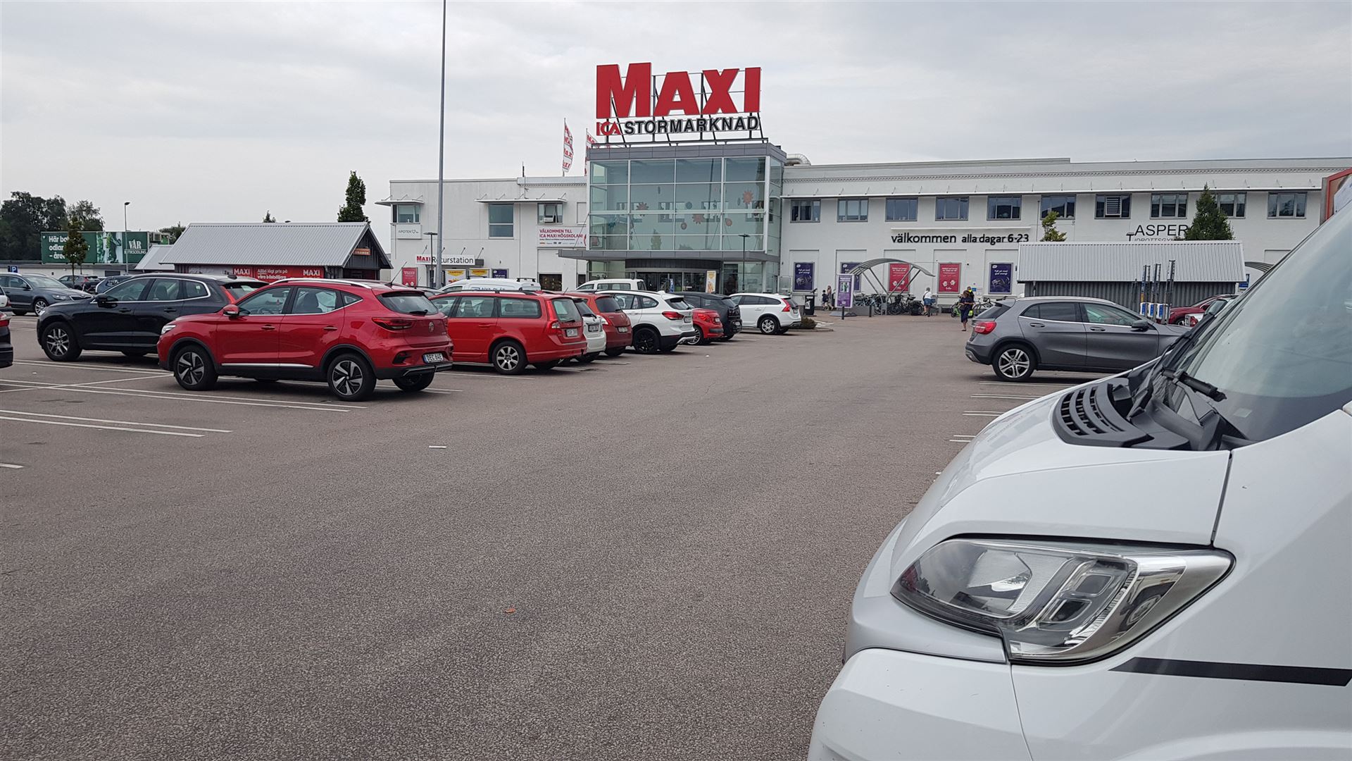 In Halmstad (Schweden) kurzer Halt an einem Supermarkt. Mona gibt schwedisches Leergut ab und kauft noch ein paar Kleinigkeiten. Und schon geht es stramm weiter.